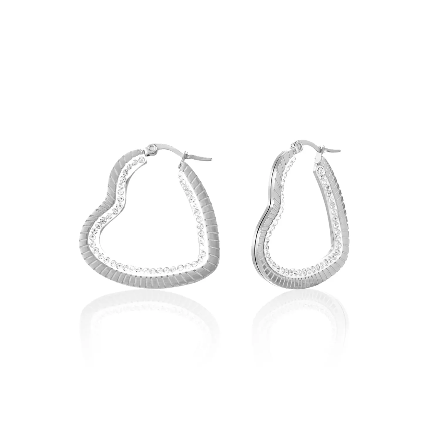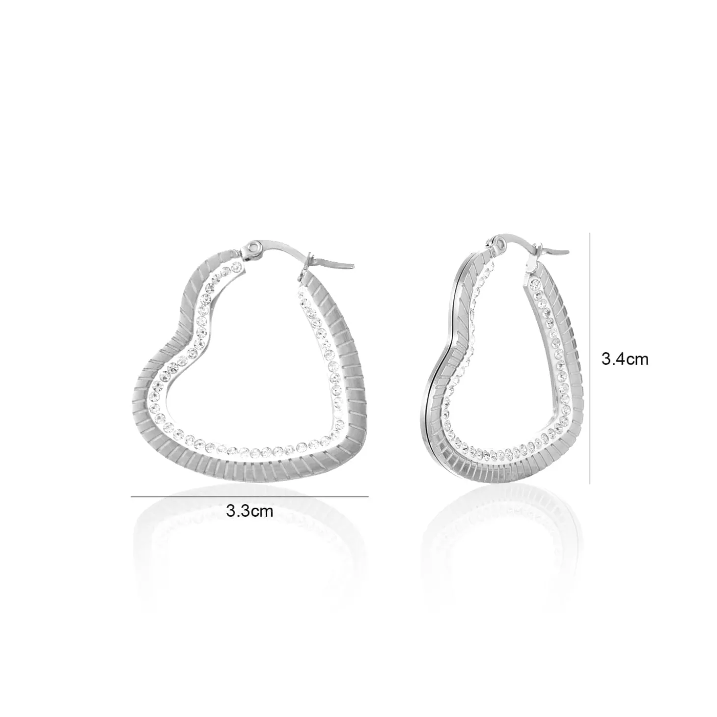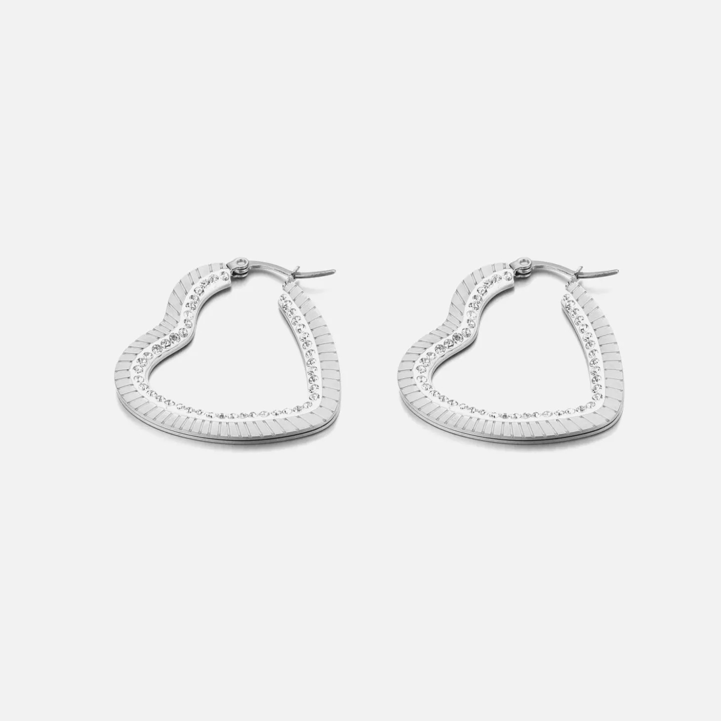 Zilveren hart vorm hoops met steentjes. Deze oorbellen zijn 3.5cm breed. Gemaakt van Hoogwaardig Stainless Steel.