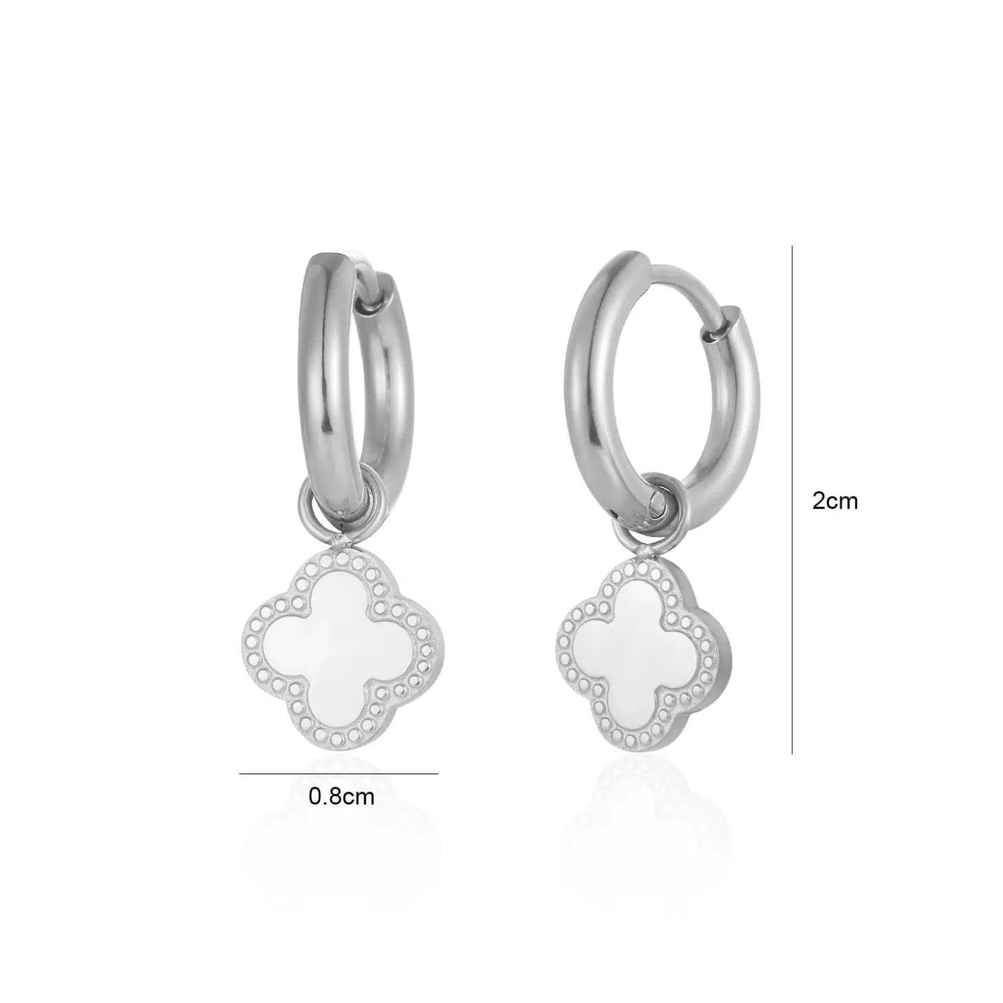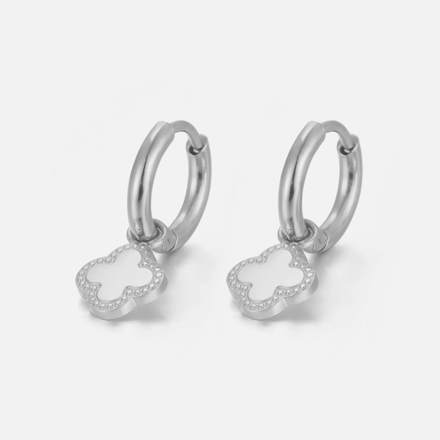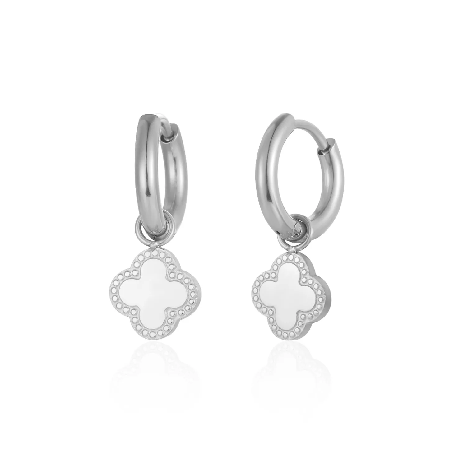 Zilveren klavertjevier oorbellen. Deze oorbellen zijn 2.5cm lang. Gemaakt van Hoogwaardig Stainless Steel.