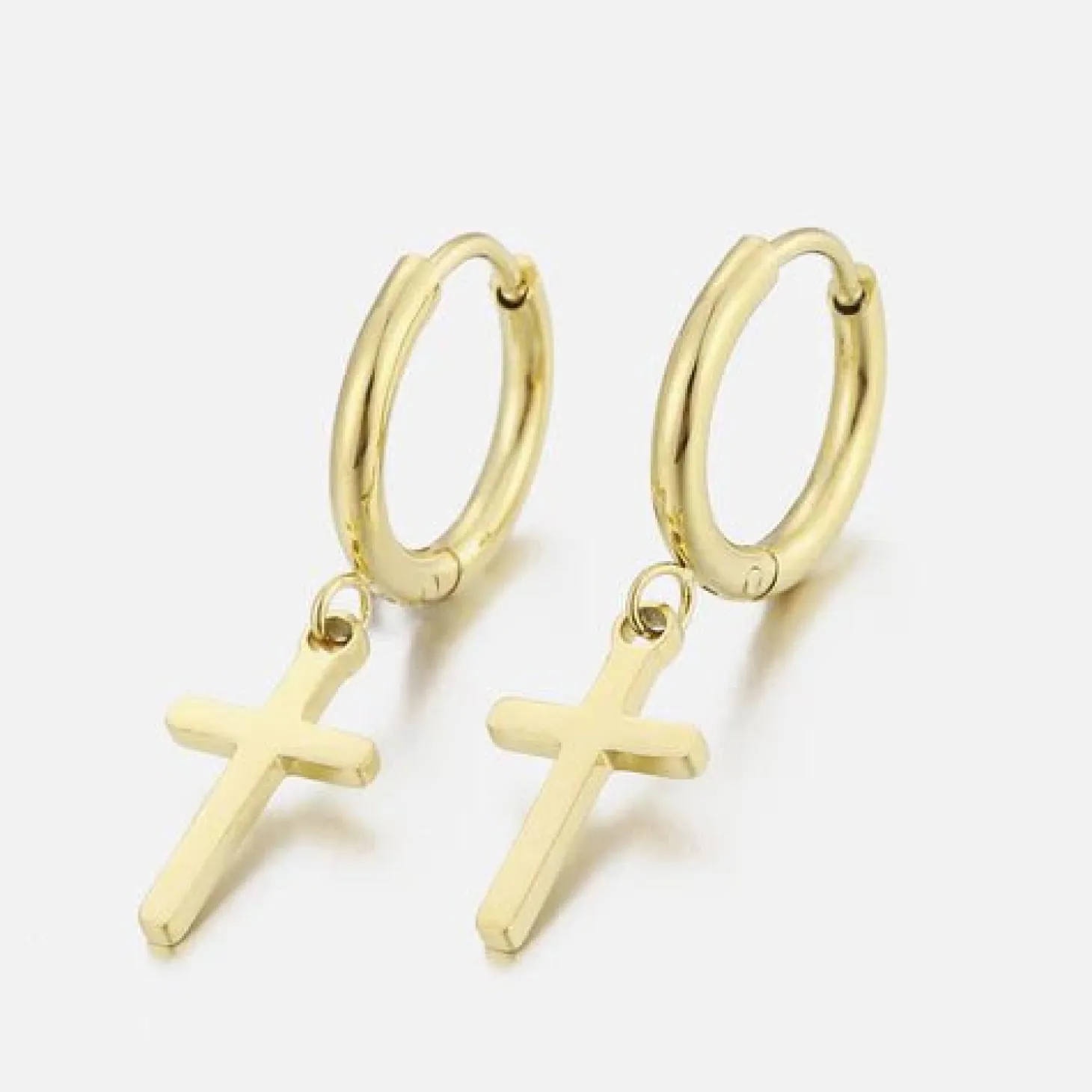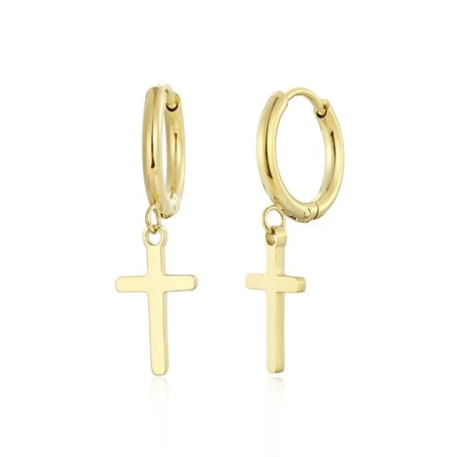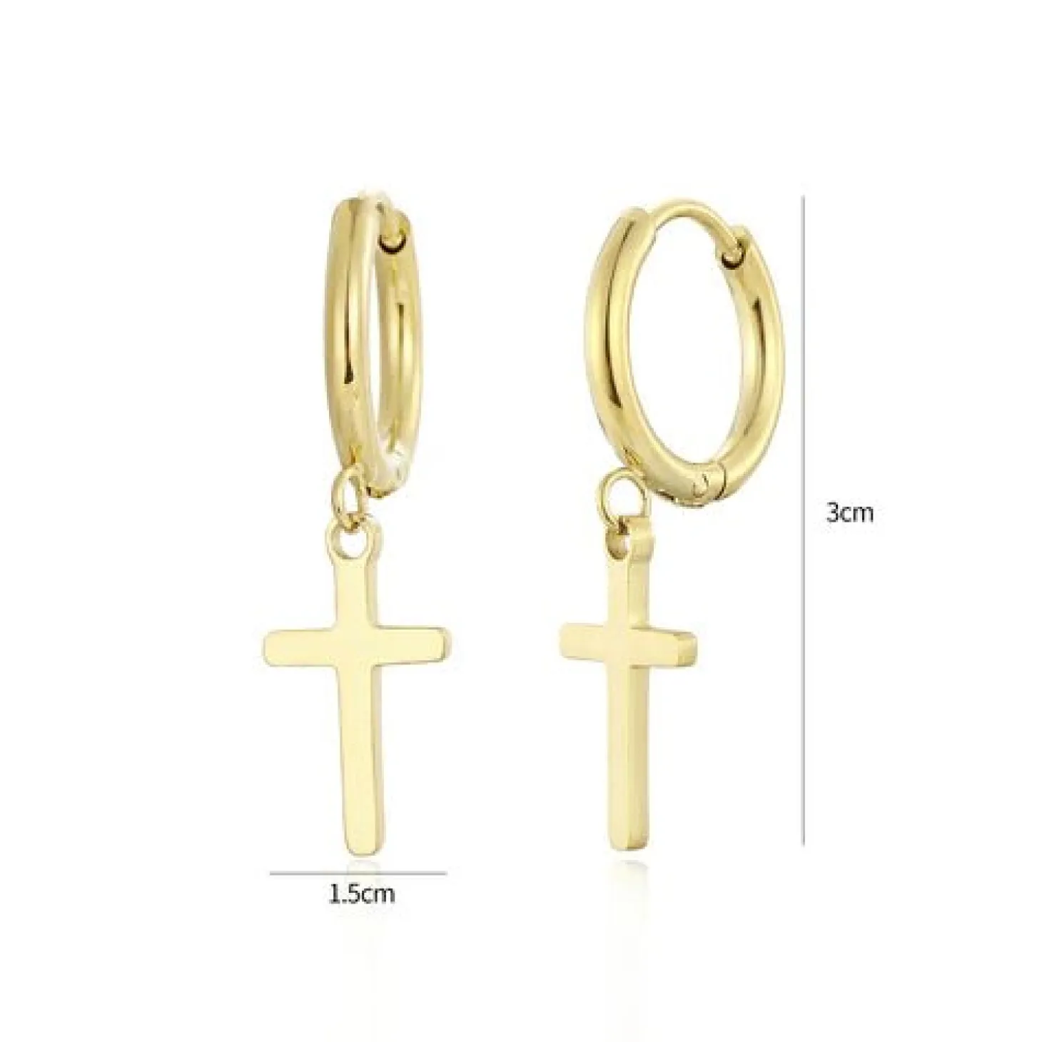 Gouden oorbellen met kruisje. Deze oorbellen zijn 3cm lang. Gemaakt van Hoogwaardig Stainless Steel.