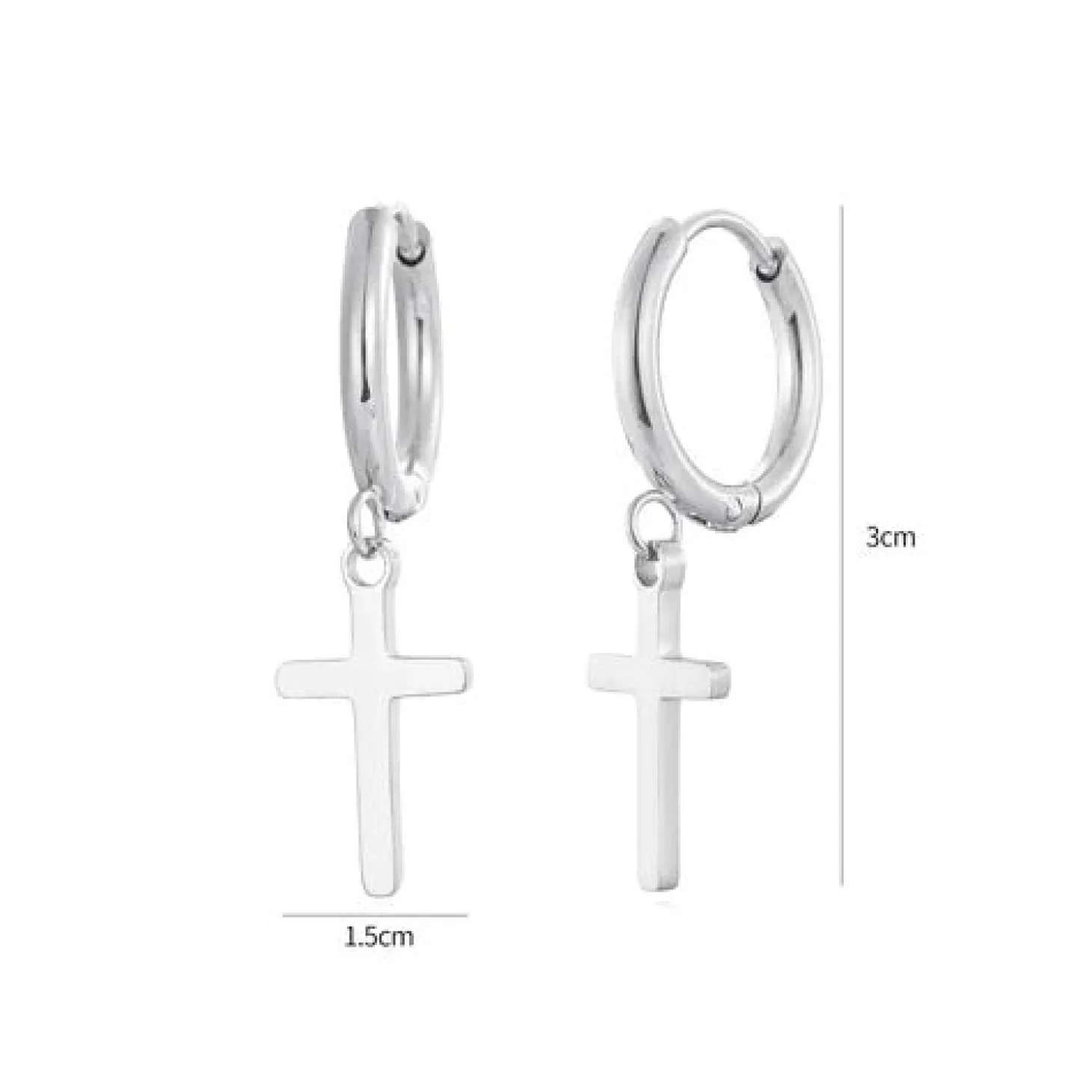 Zilveren oorbellen met kruisje. Deze oorbellen zijn 3cm lang. Gemaakt van Hoogwaardig Stainless Steel.