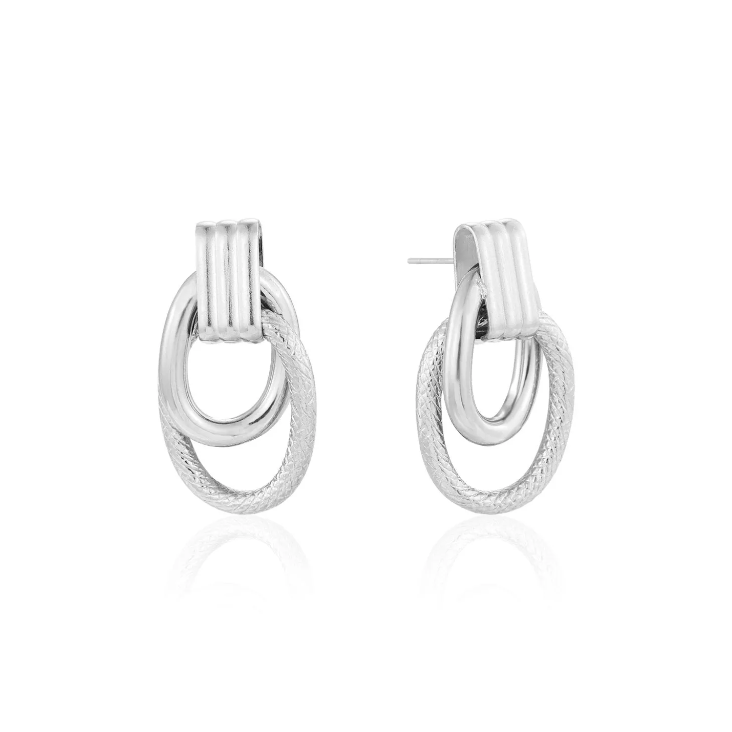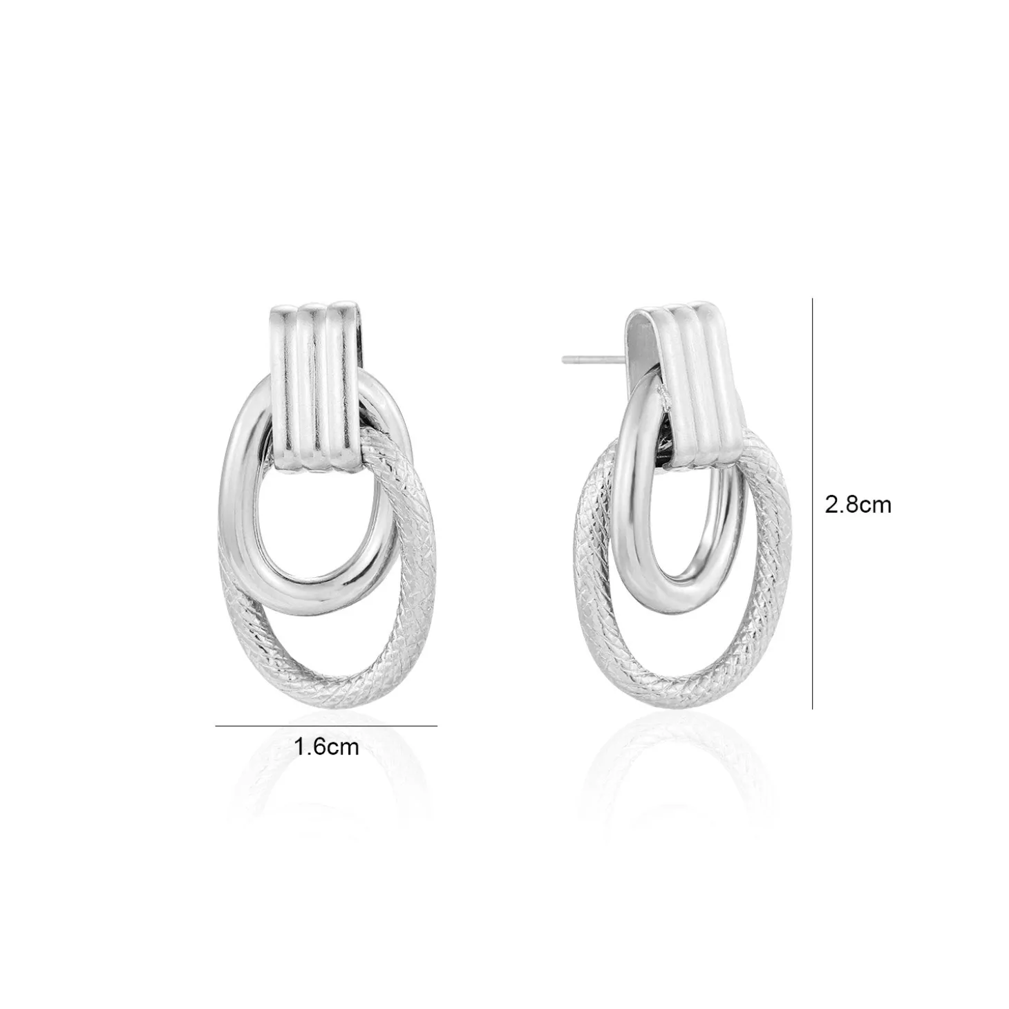 Zilveren oorstekers met ovaal gekruld motief. Deze oorbellen zijn 2.8cm breed. Gemaakt van Hoogwaardig Stainless Steel.
