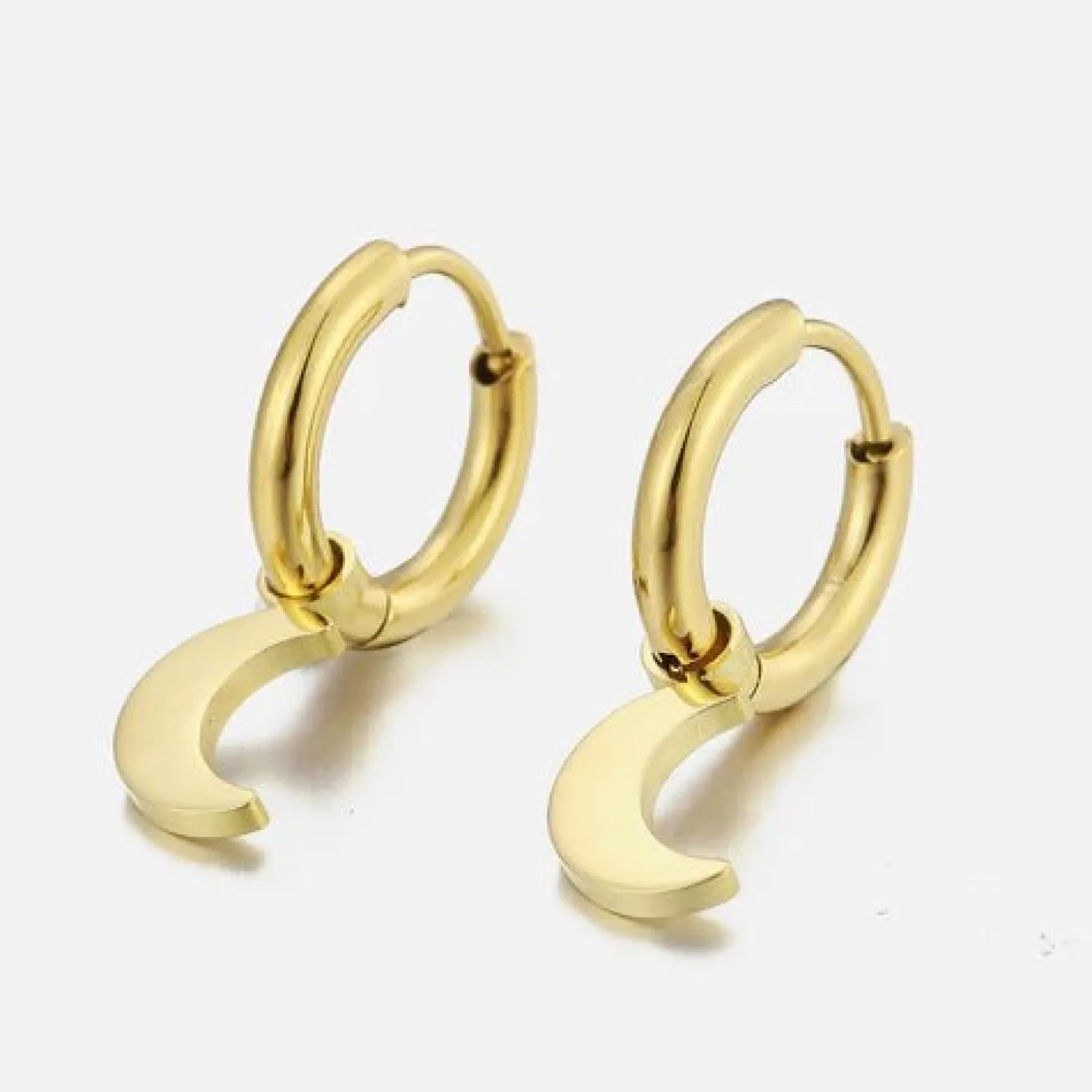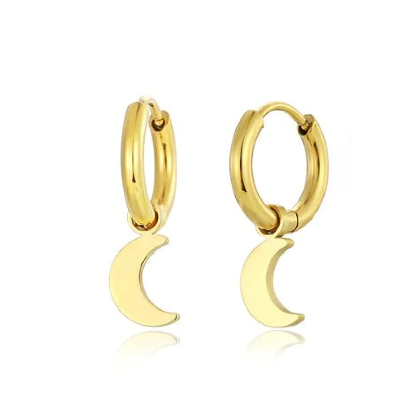 Gouden oorbellen met maan bedeltjes. Deze oorbellen zijn 2cm lang. Gemaakt van Hoogwaardig Stainless Steel.