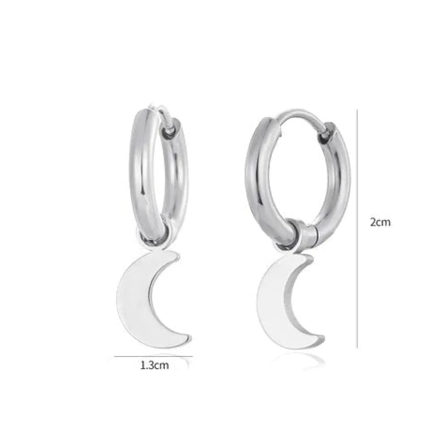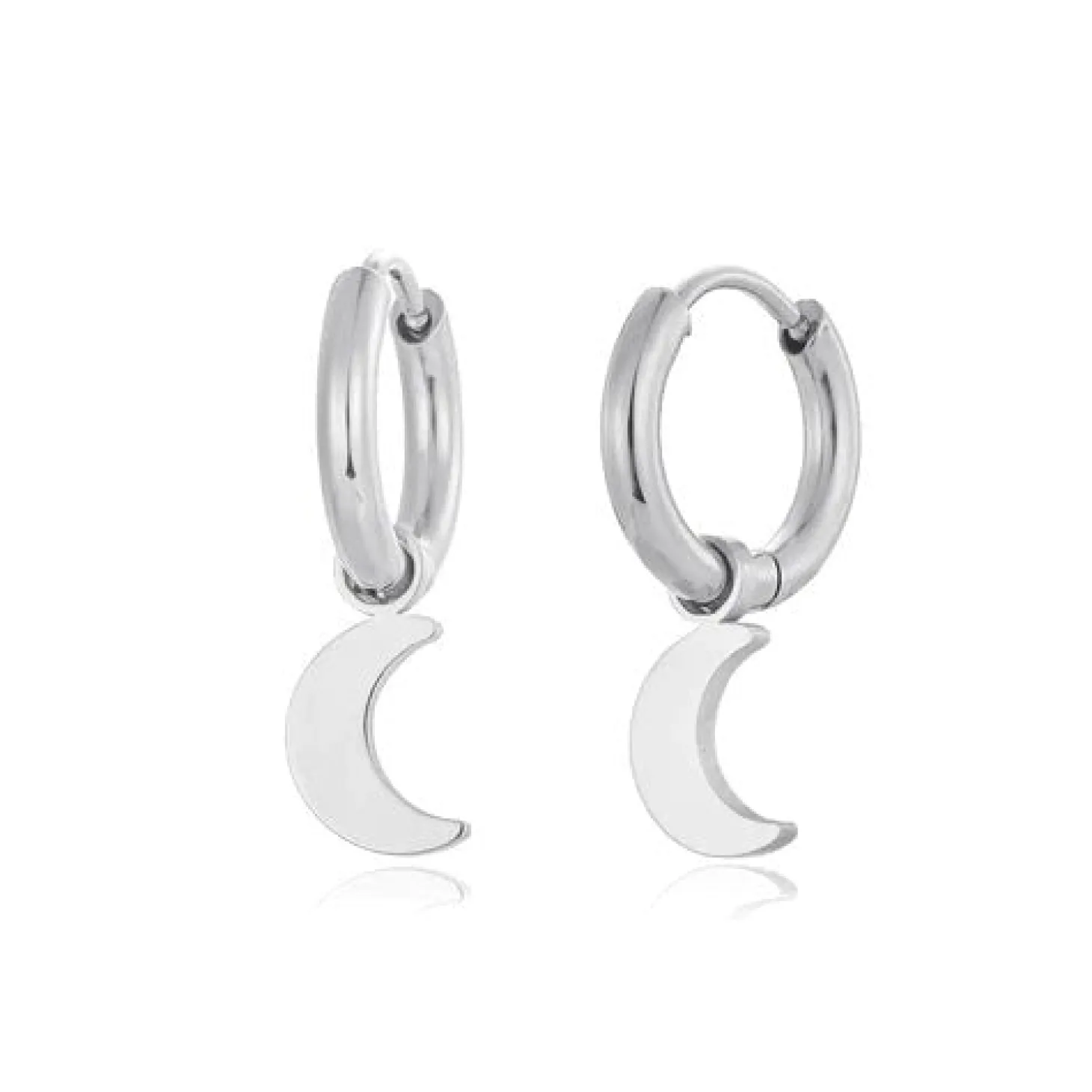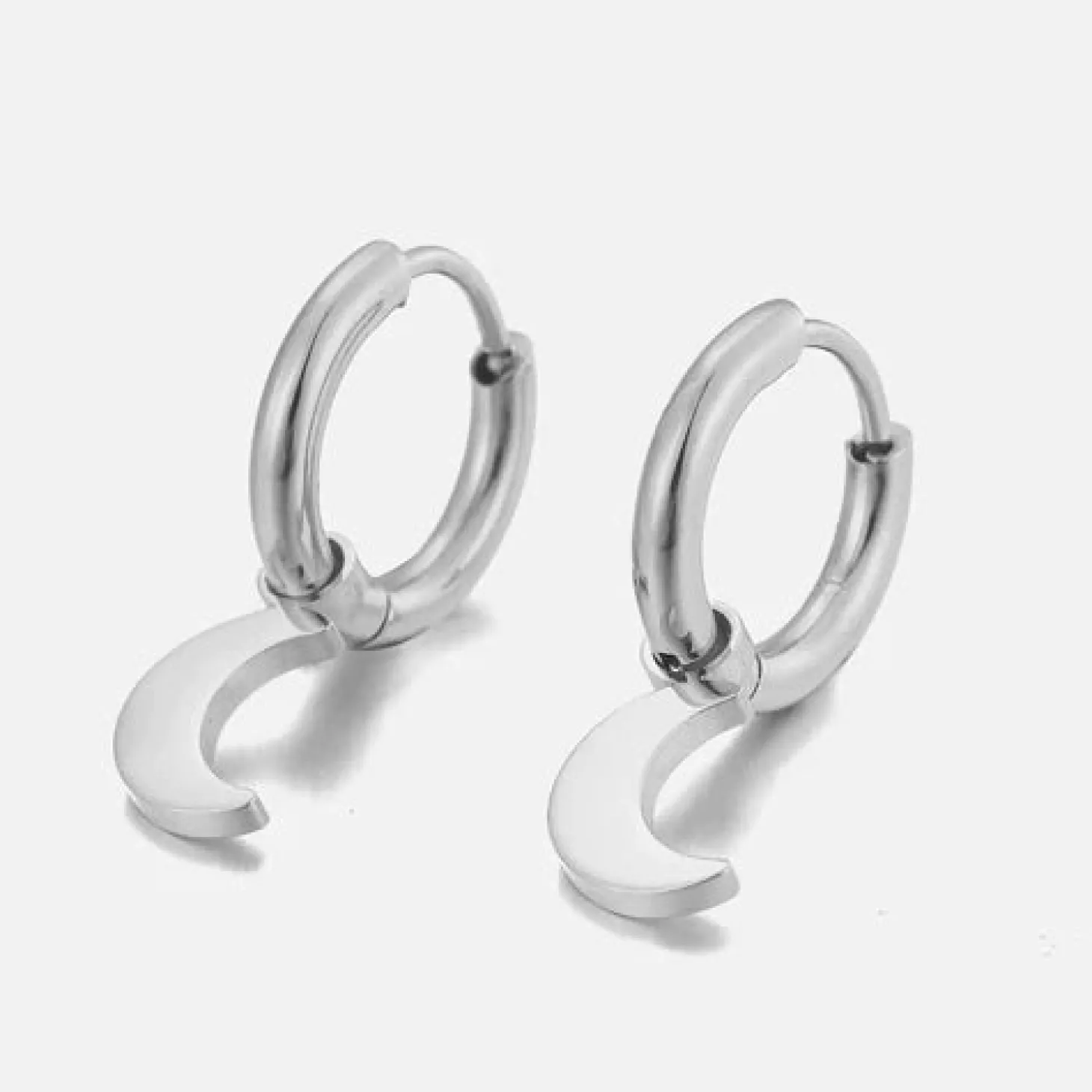 Zilveren oorbellen met maan bedeltjes. Deze oorbellen zijn 2cm lang. Gemaakt van Hoogwaardig Stainless Steel.