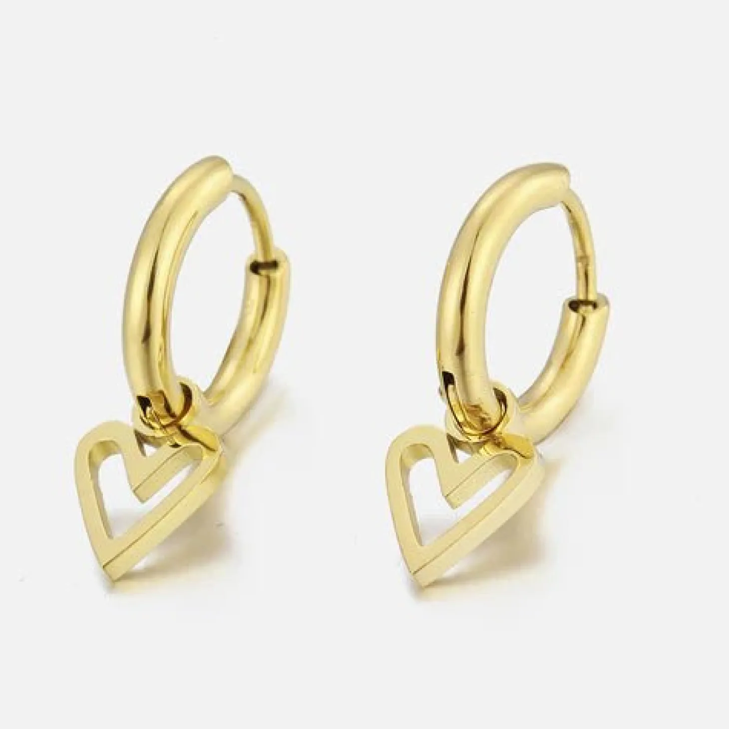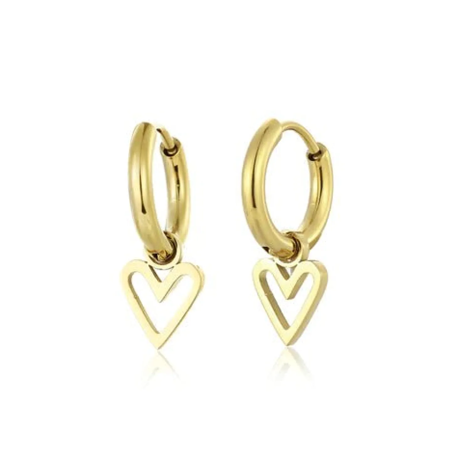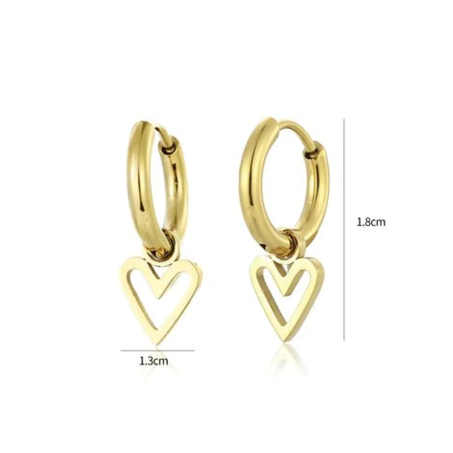 Gouden oorbellen met hartje open. Deze oorbellen zijn 1.8cm lang. Gemaakt van Hoogwaardig Stainless Steel.