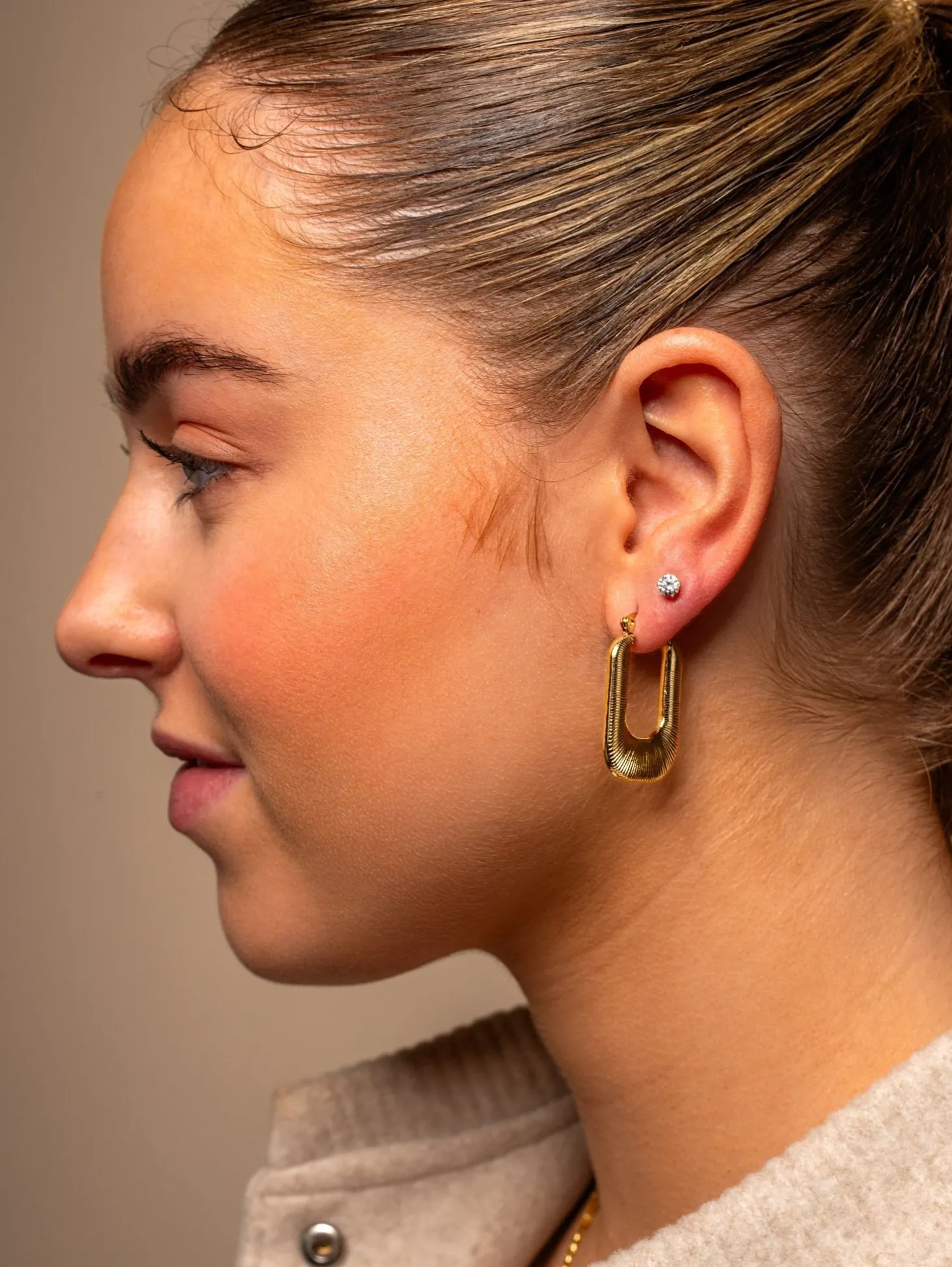Gouden oorbellen. Deze oorbellen zijn 3.2cm lang. Gemaakt van Hoogwaardig Stainless Steel.