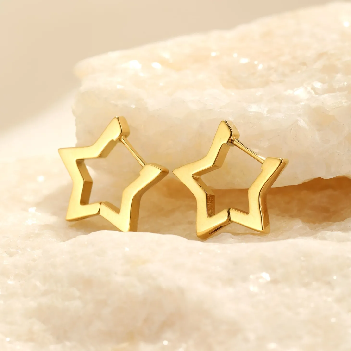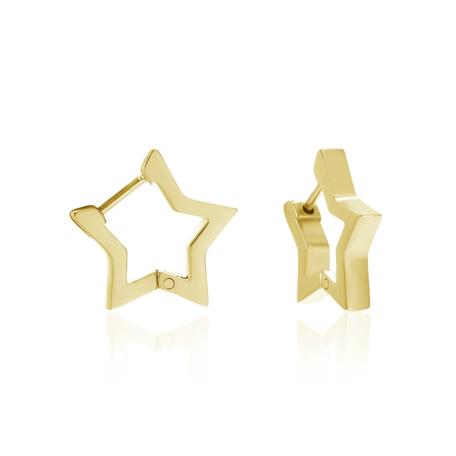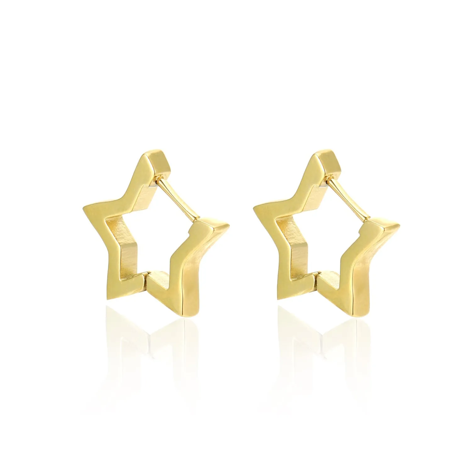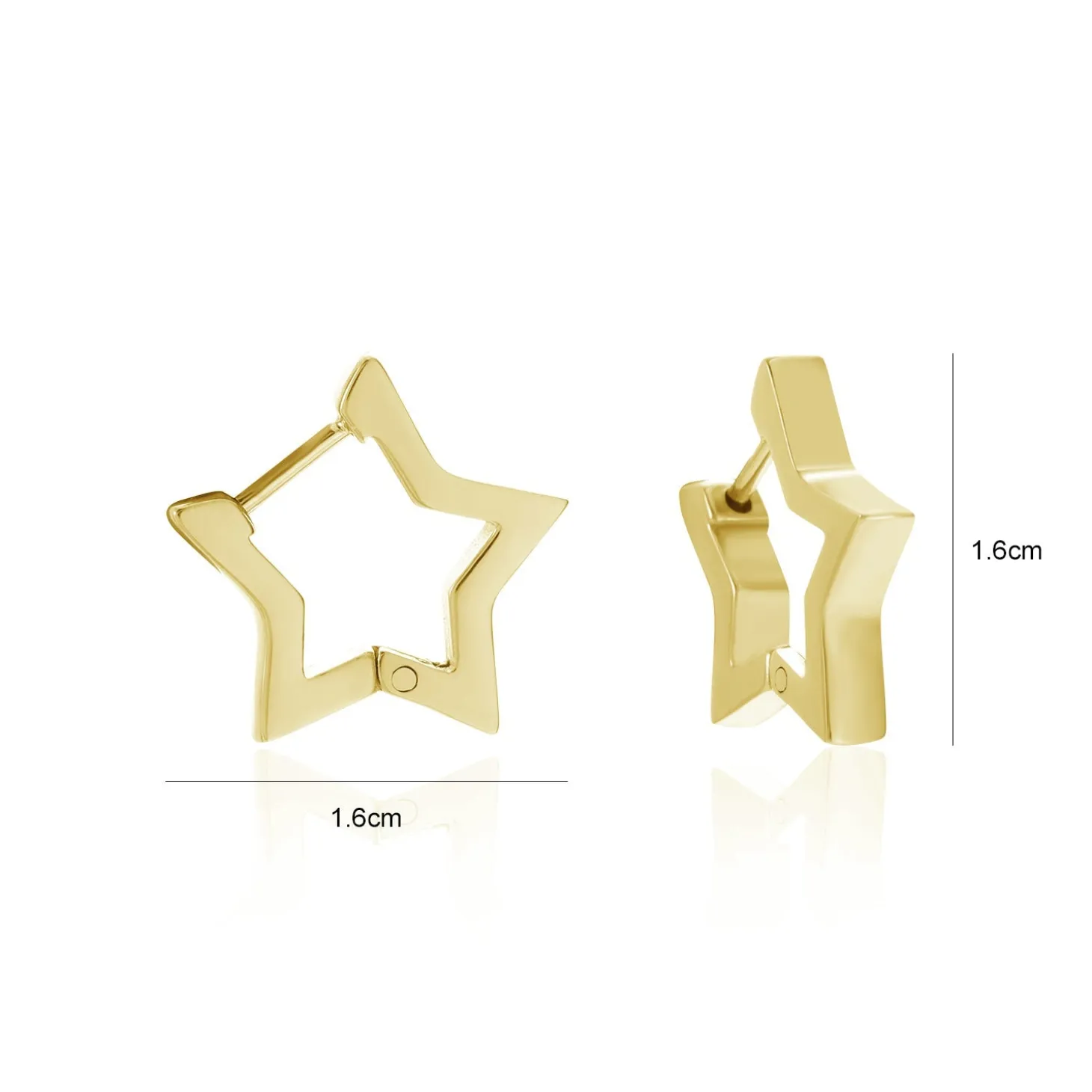 Gouden ster vormige hoop. Deze oorbellen zijn 1.6cm lang. Gemaakt van Hoogwaardig Stainless Steel.