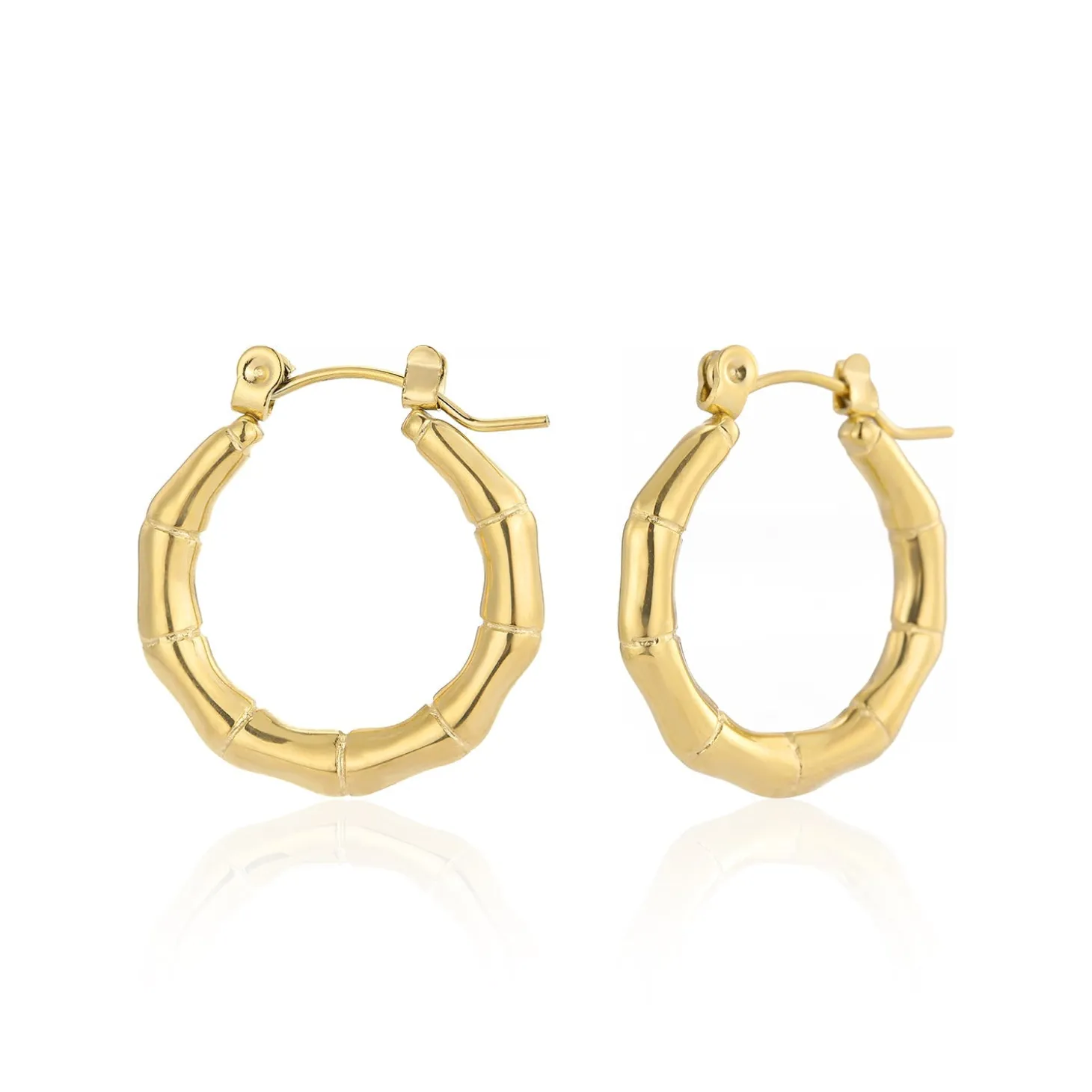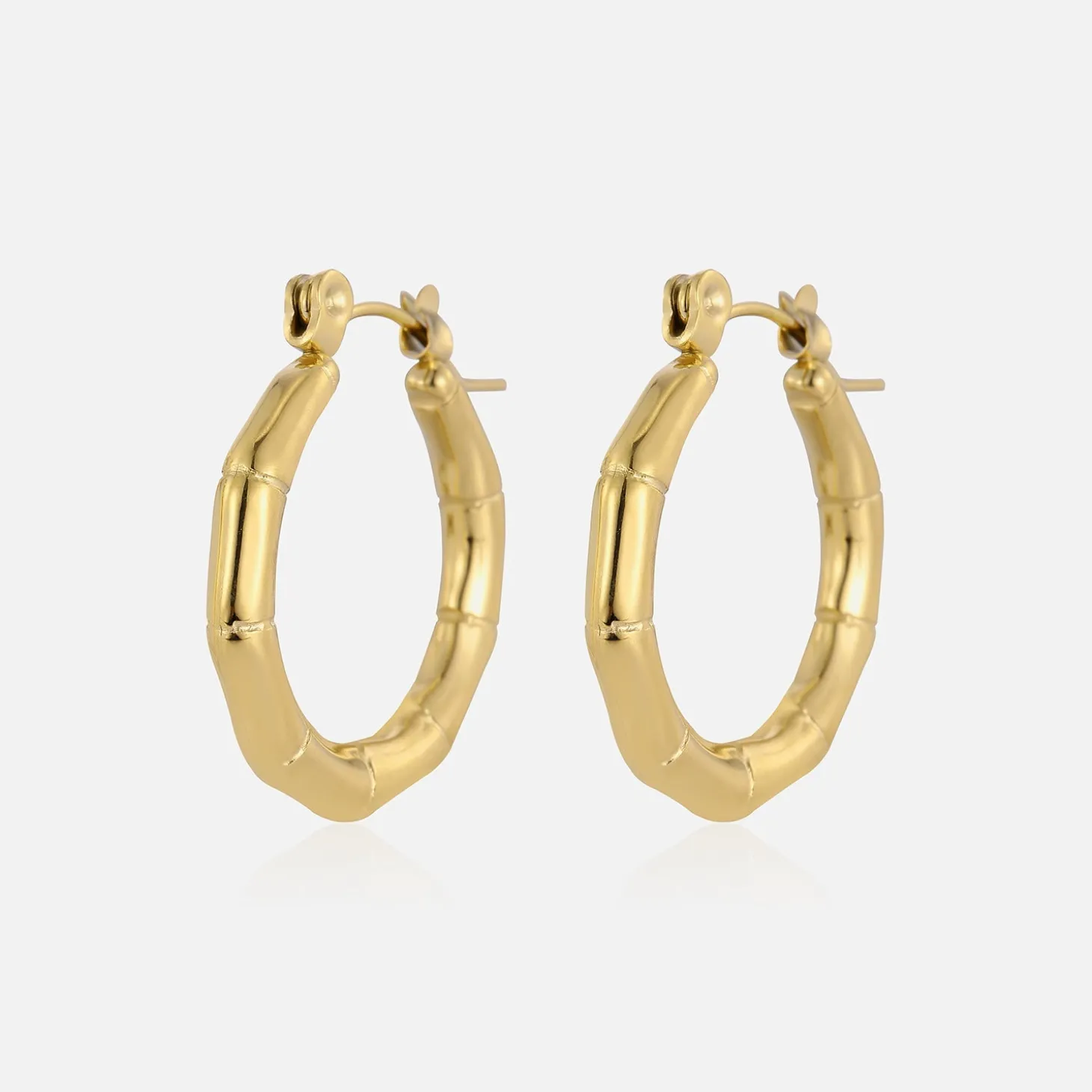 Gouden bamboe oorbellen. Deze oorbellen zijn 2.5cm breed. Gemaakt van Hoogwaardig Stainless Steel.