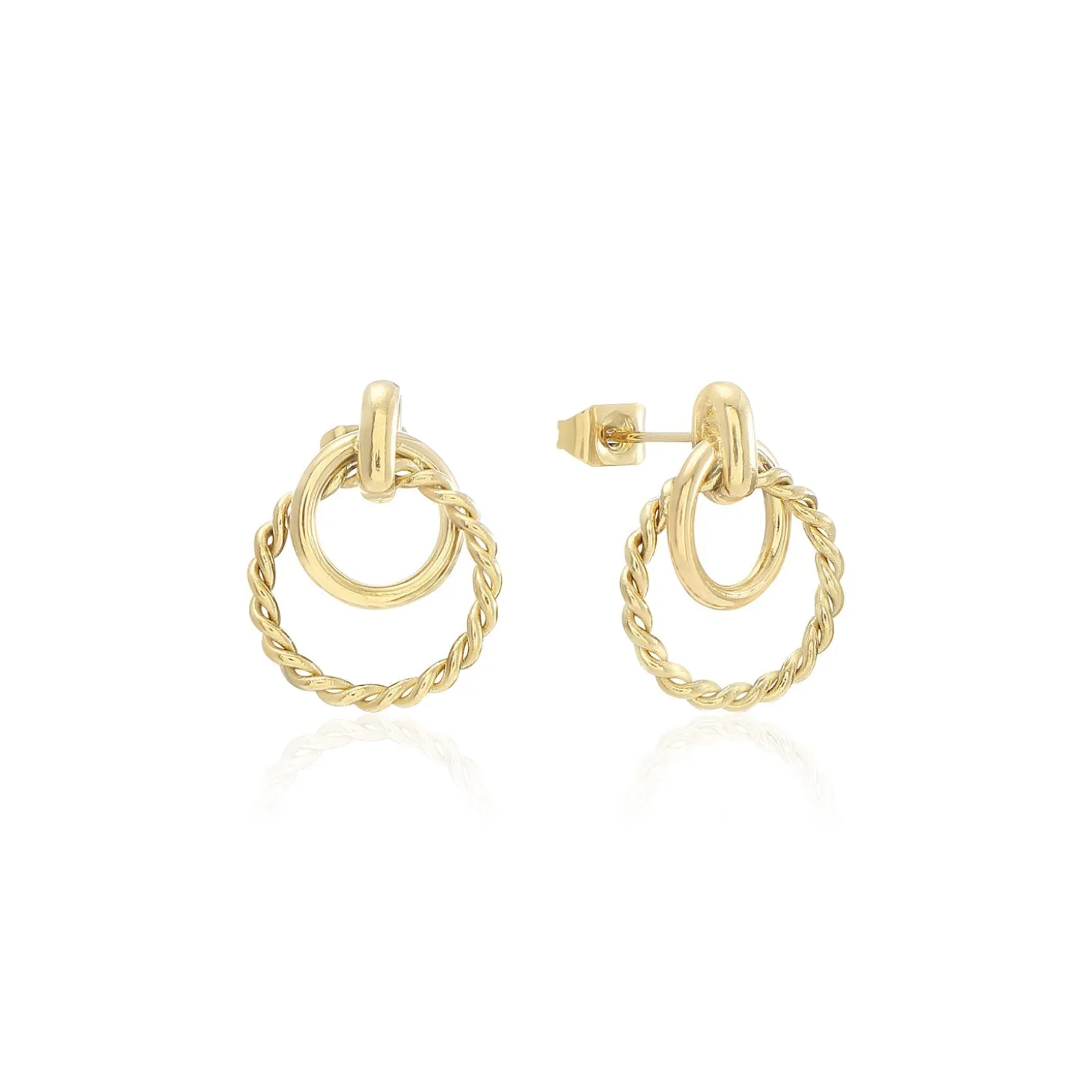Gouden oorstekers met gekruld motief. Deze oorbellen zijn 2cm breed. Gemaakt van Hoogwaardig Stainless Steel.