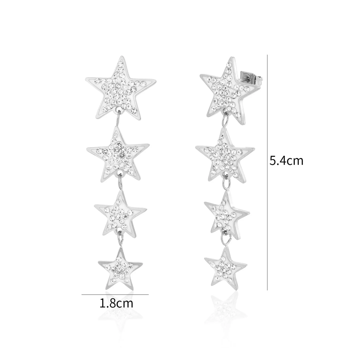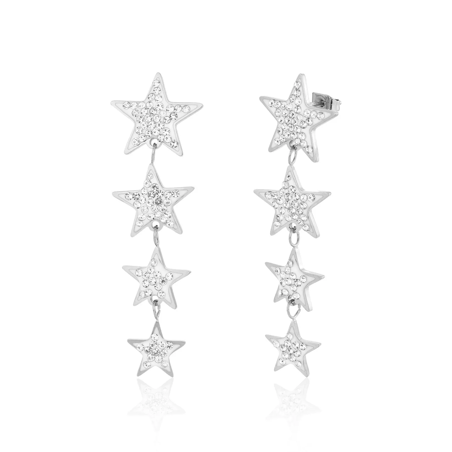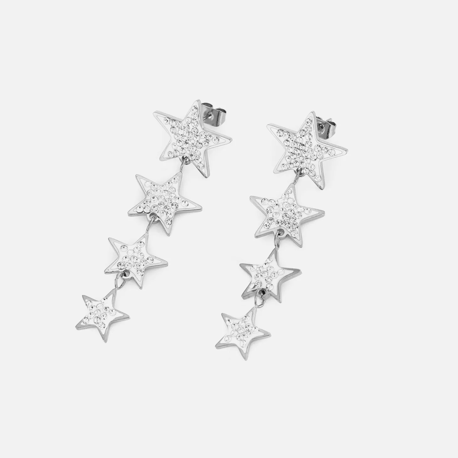 Zilveren statement oorbellen met hangende sterren. Deze oorbellen zijn 5.4cm breed. Gemaakt van Hoogwaardig Stainless Steel.