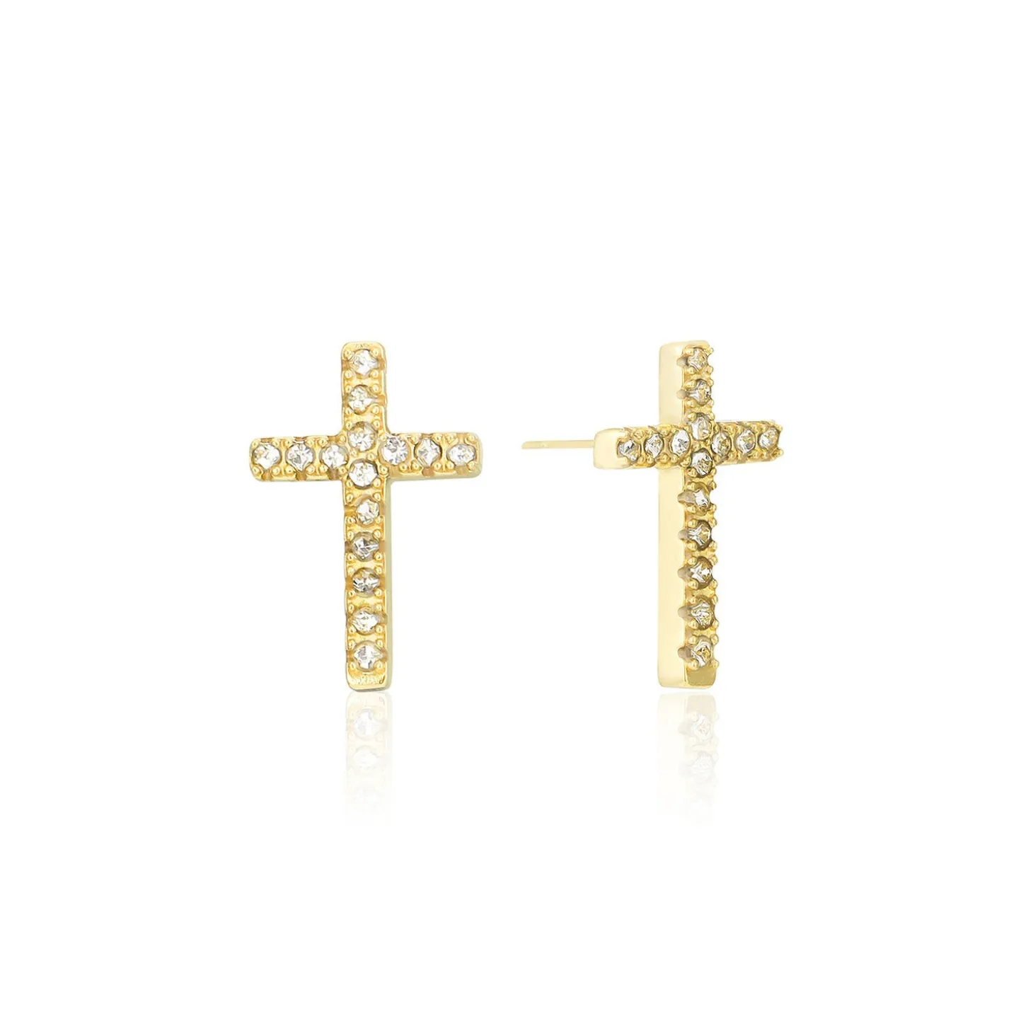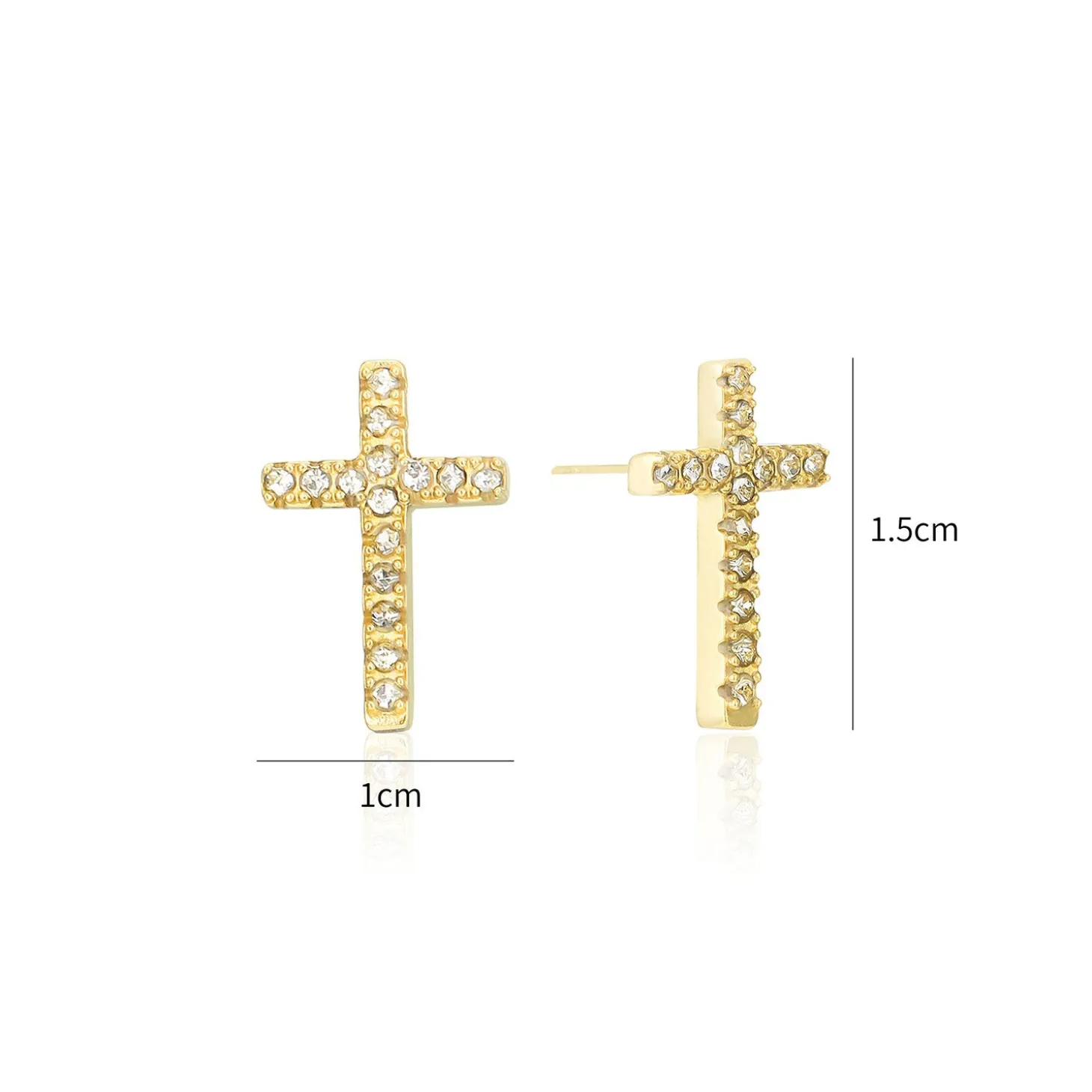 Gouden kruisje met steentjes. Deze oorbellen zijn 1.5cm lang. Gemaakt van Hoogwaardig Stainless Steel.