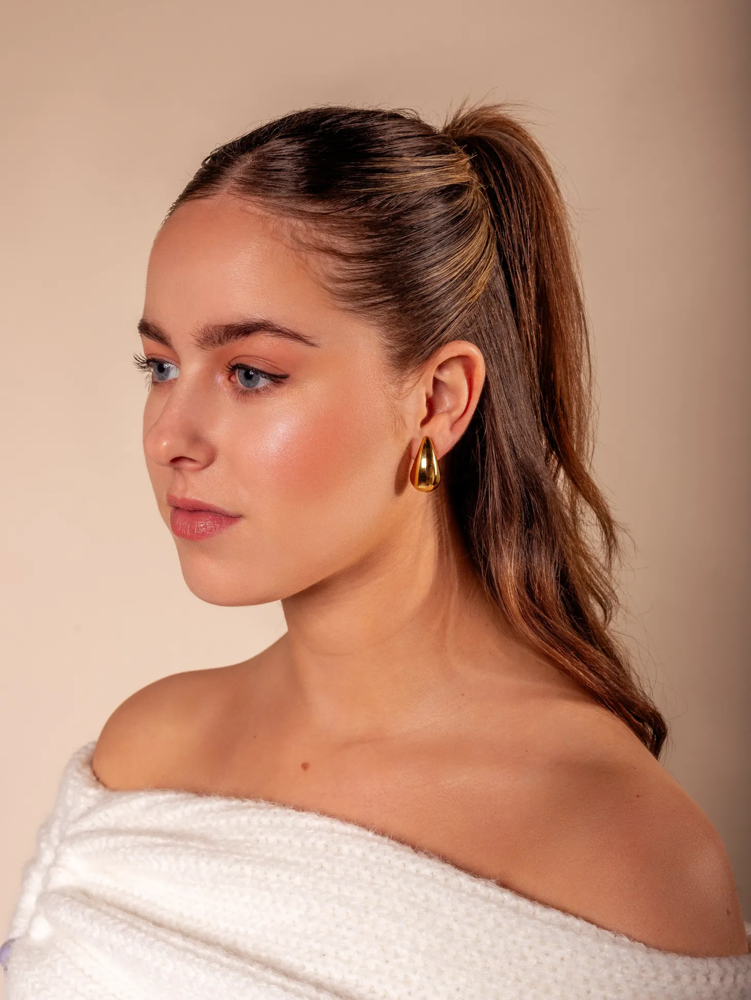Gouden druppel oorbellen. Deze oorbellen zijn 2.5cm lang. Gemaakt van Hoogwaardig Stainless Steel.