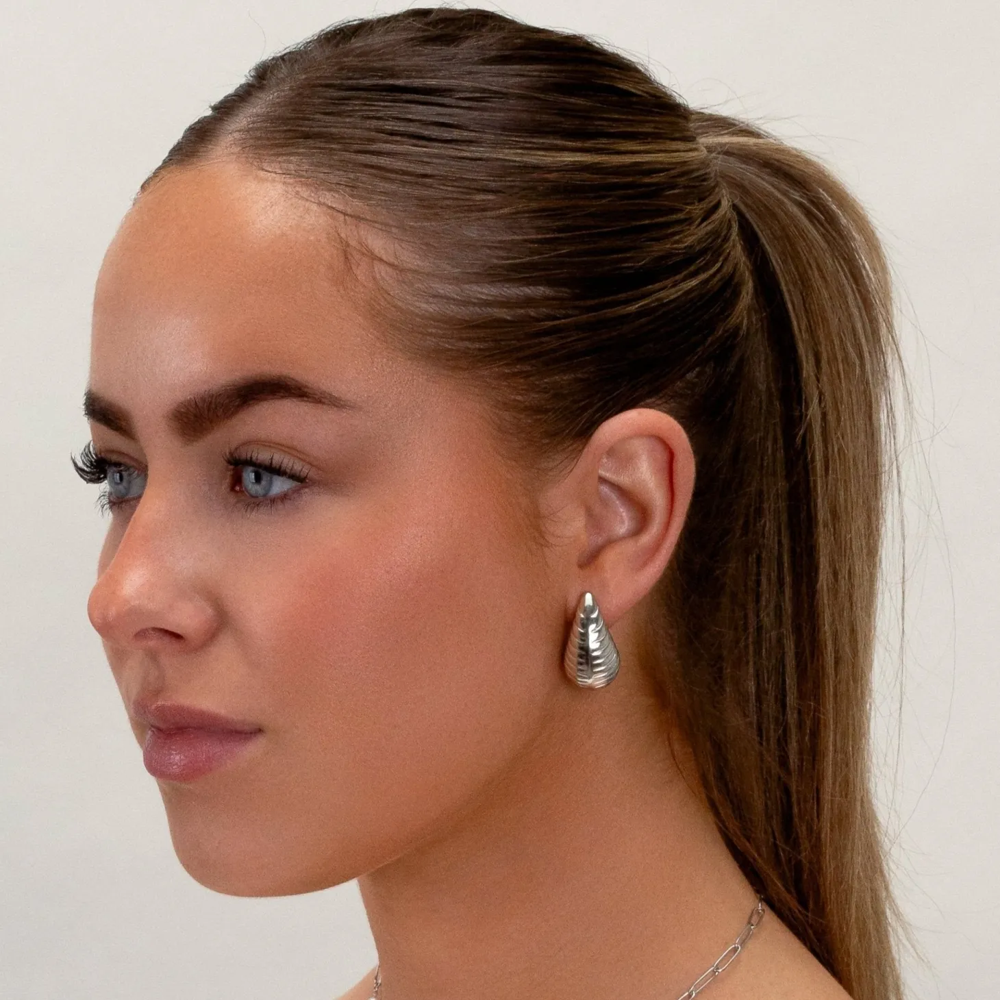 Zilveren druppel oorbellen met ribbels. Deze oorbellen zijn 2.7cm lang. Gemaakt van Hoogwaardig Stainless Steel.