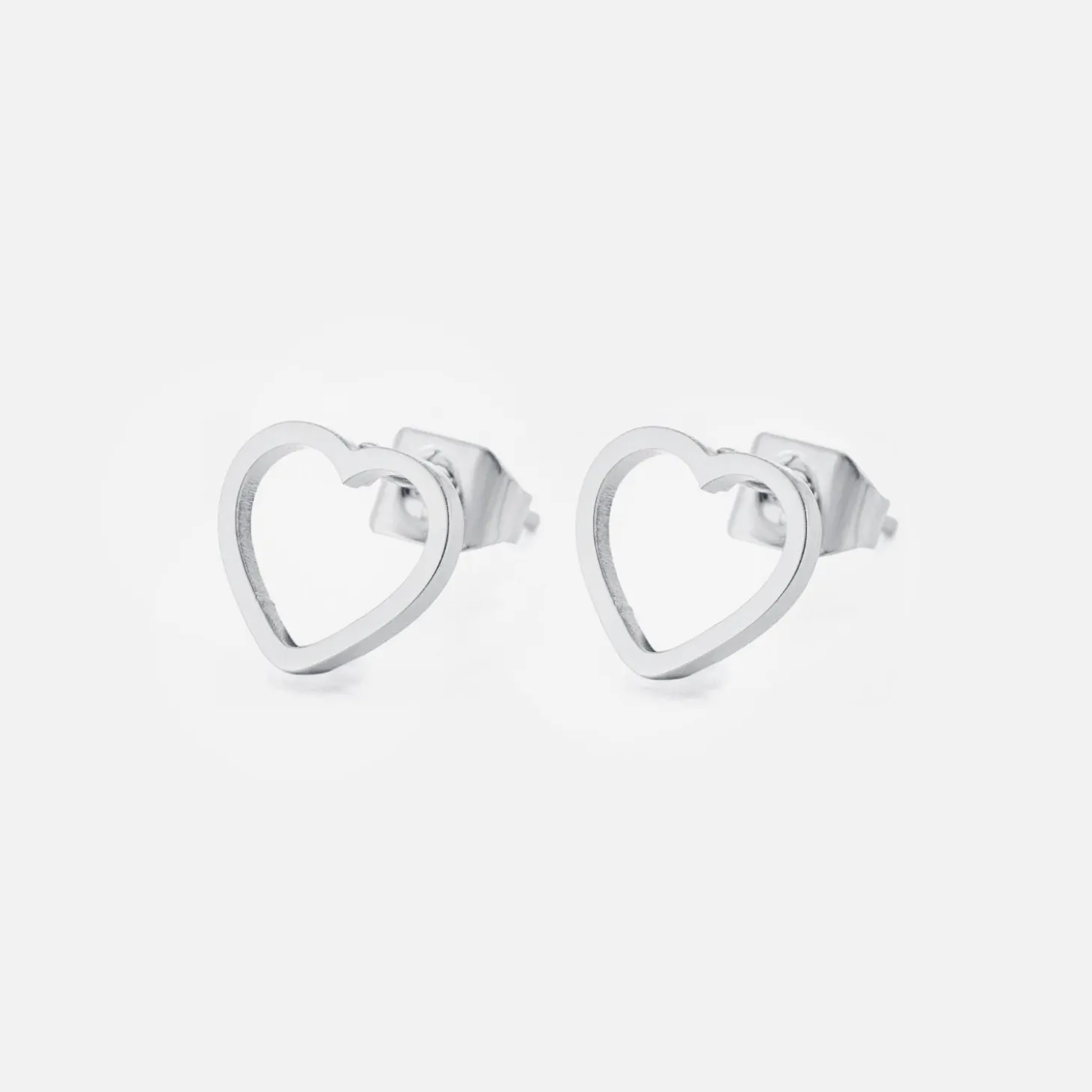 Zilveren stud oorbellen met open hartje. Deze oorbellen zijn 1cm breed. Gemaakt van Hoogwaardig Stainless Steel.