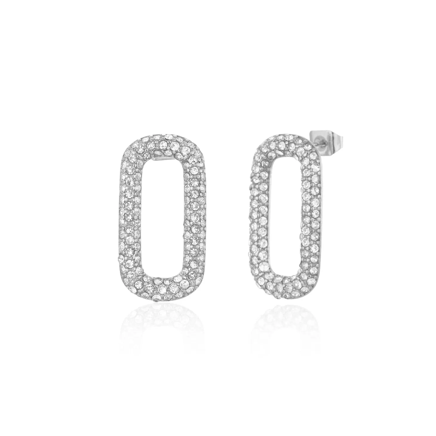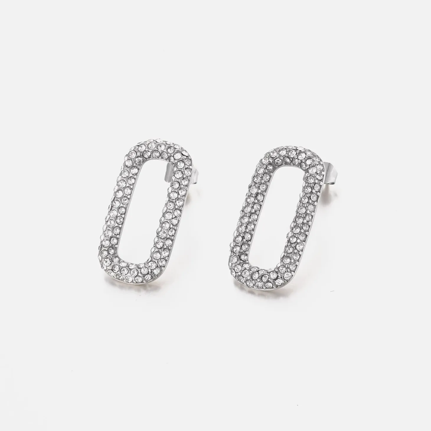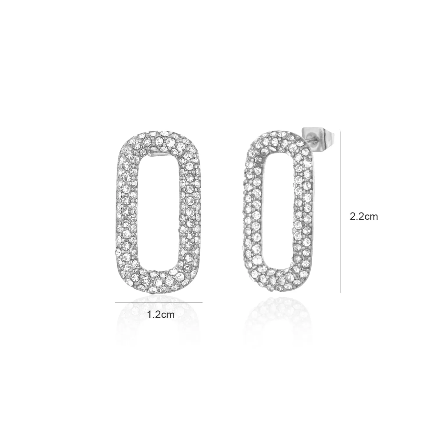 Zilveren vierkant stud oorbellen met steentje. Deze oorbellen zijn 2.2cm lang. Gemaakt van Hoogwaardig Stainless Steel.