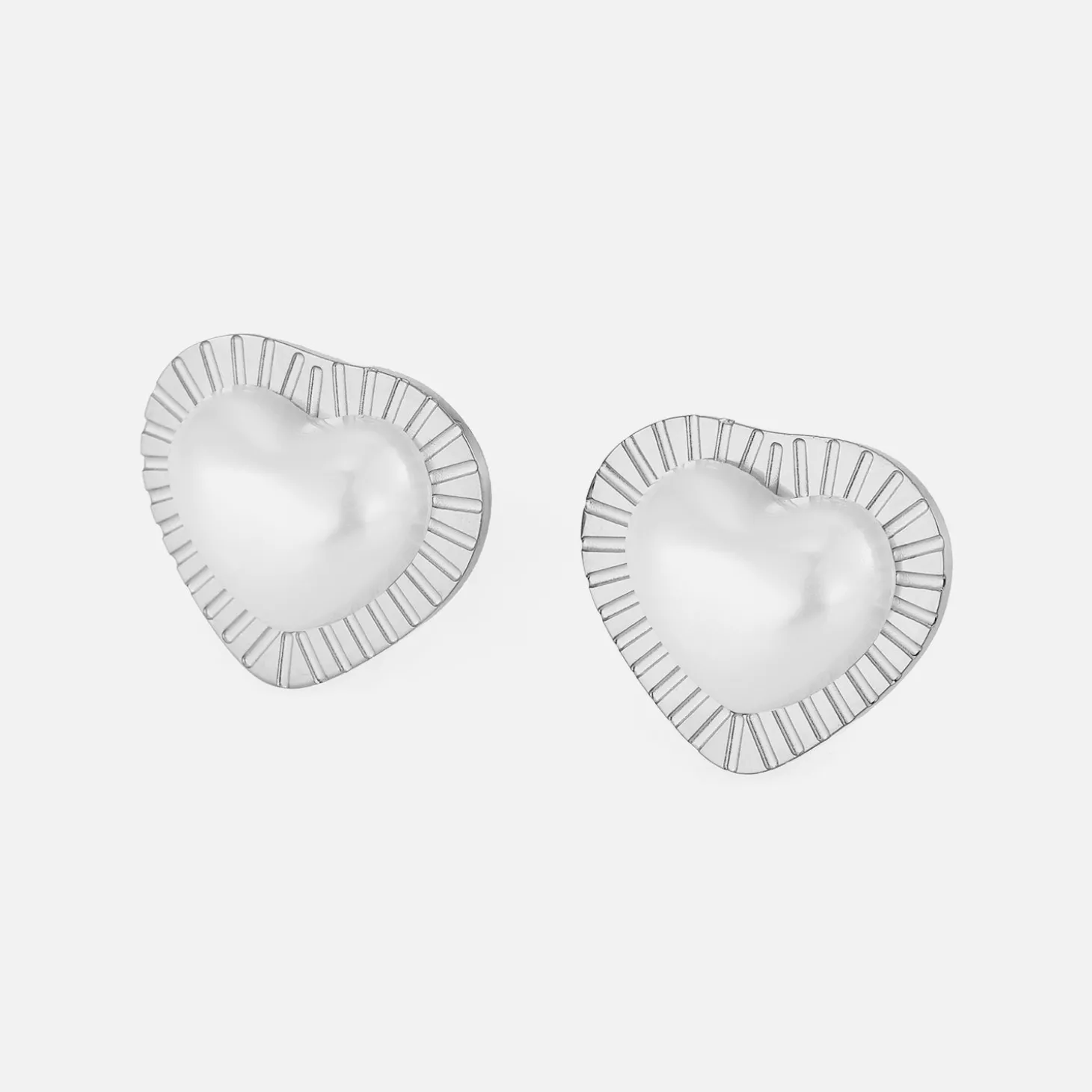 Zilveren stud oorbellen met parel hart. Deze oorbellen zijn 1.4cm breed. Gemaakt van Hoogwaardig Stainless Steel.