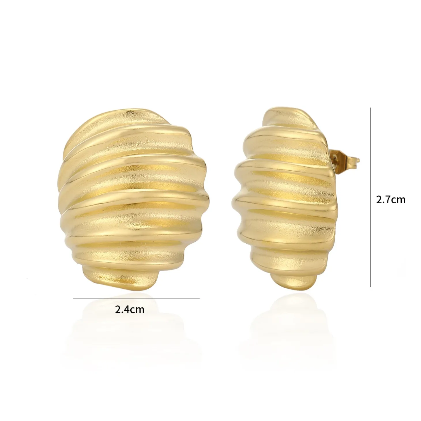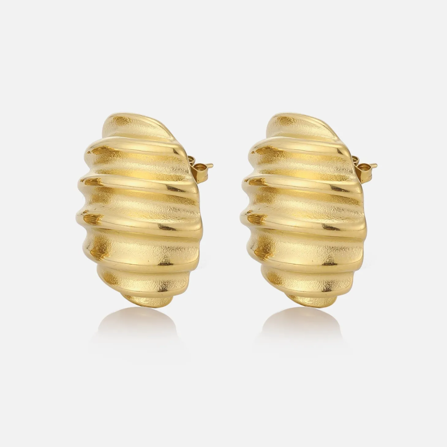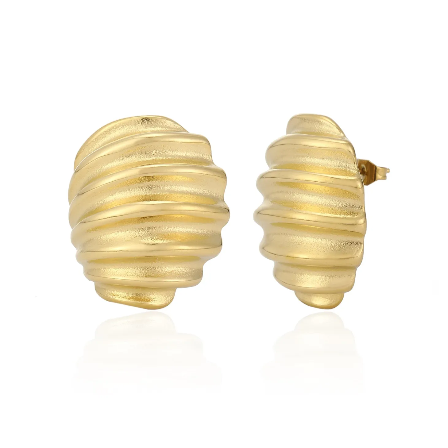 Gouden schelp achtige studs oorbellen. Deze oorbellen zijn 2.7cm breed. Gemaakt van Hoogwaardig Stainless Steel.