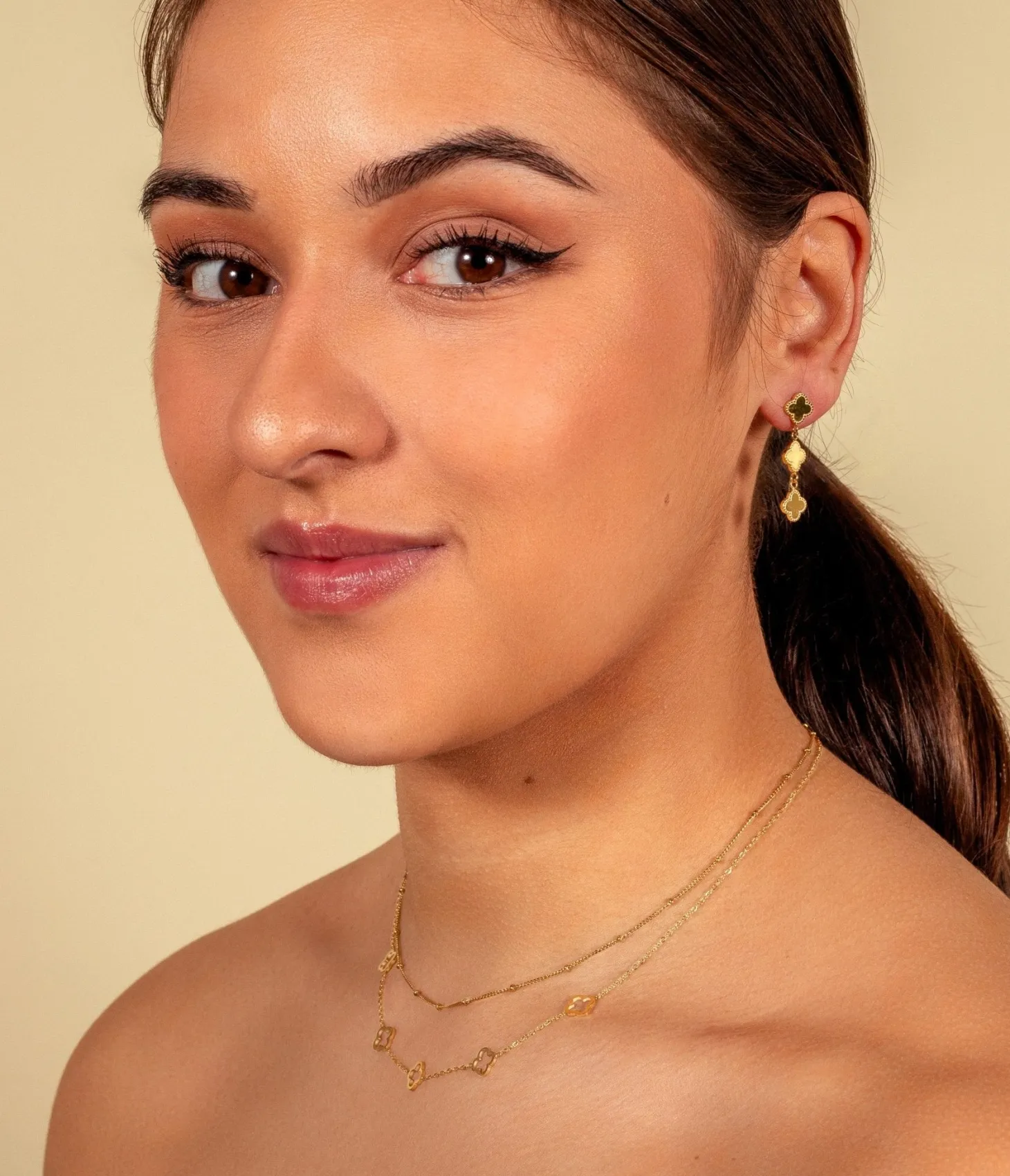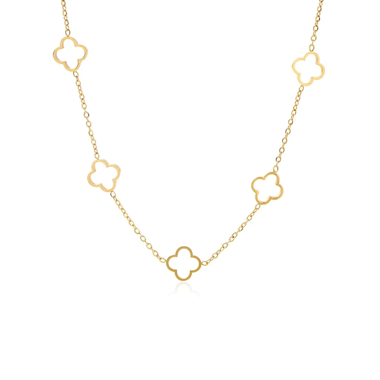 Gouden ketting met open klavers. Lengte 40cm en nog eens te verlengen met 5cm. Gemaakt van hoogwaardig stainless steel.