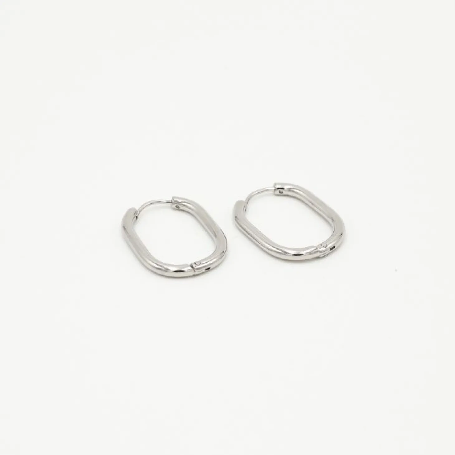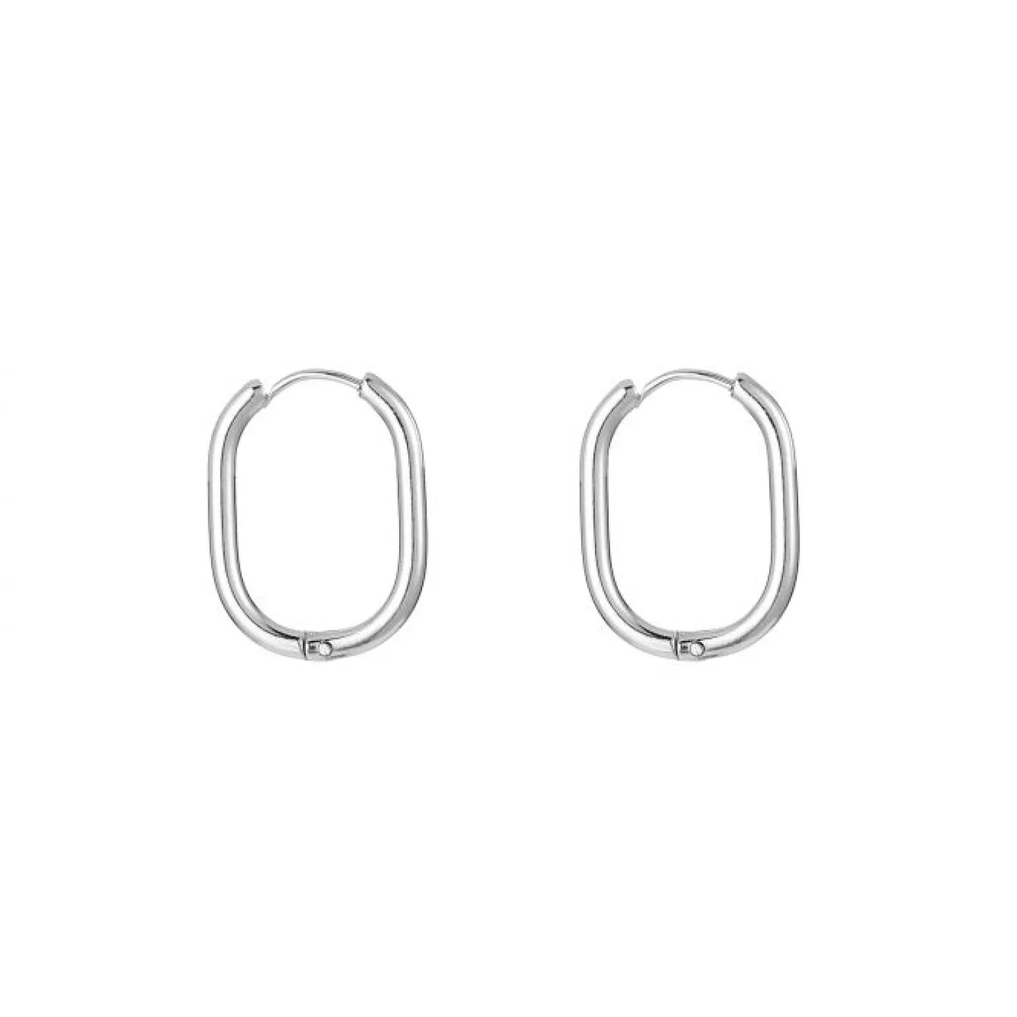 Zilveren ovale oorbellen. Deze oorbellen zijn 2cm lang. Gemaakt van Hoogwaardig Stainless Steel.