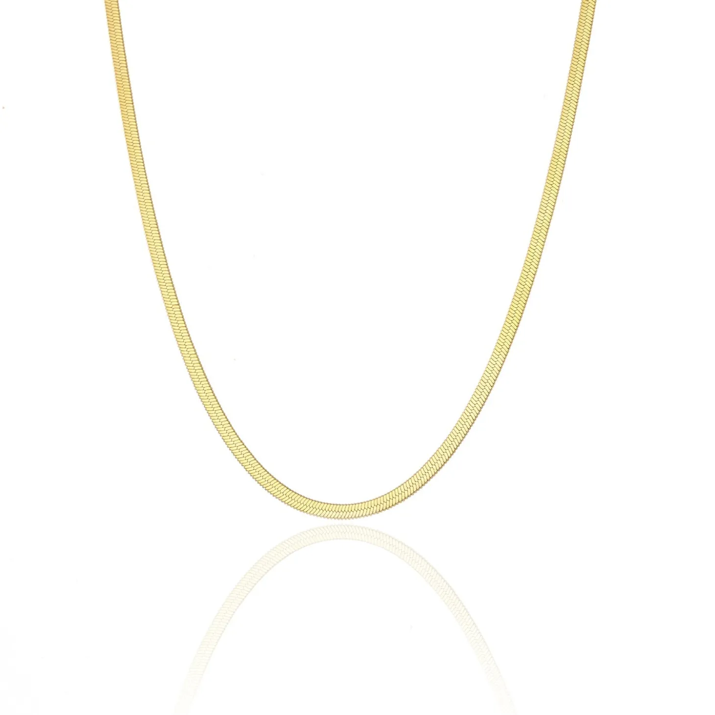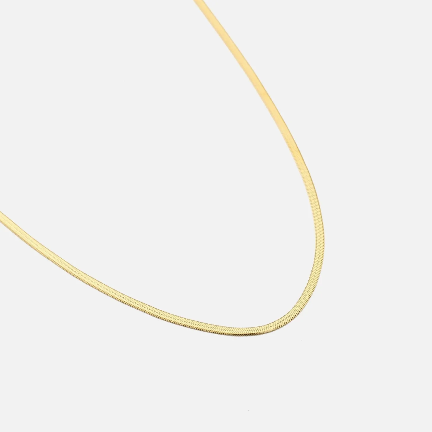 Gouden platte ketting. Lengte 40cm en nog eens te verlengen met 5cm. Dikte 2mm. Gemaakt van hoogwaardig stainless steel.