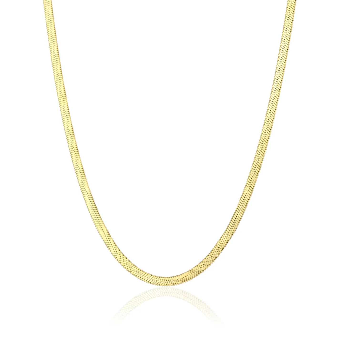 Gouden platte ketting. Lengte 40cm en nog eens te verlengen met 5cm. dikte 3mm. Gemaakt van hoogwaardig stainless steel.