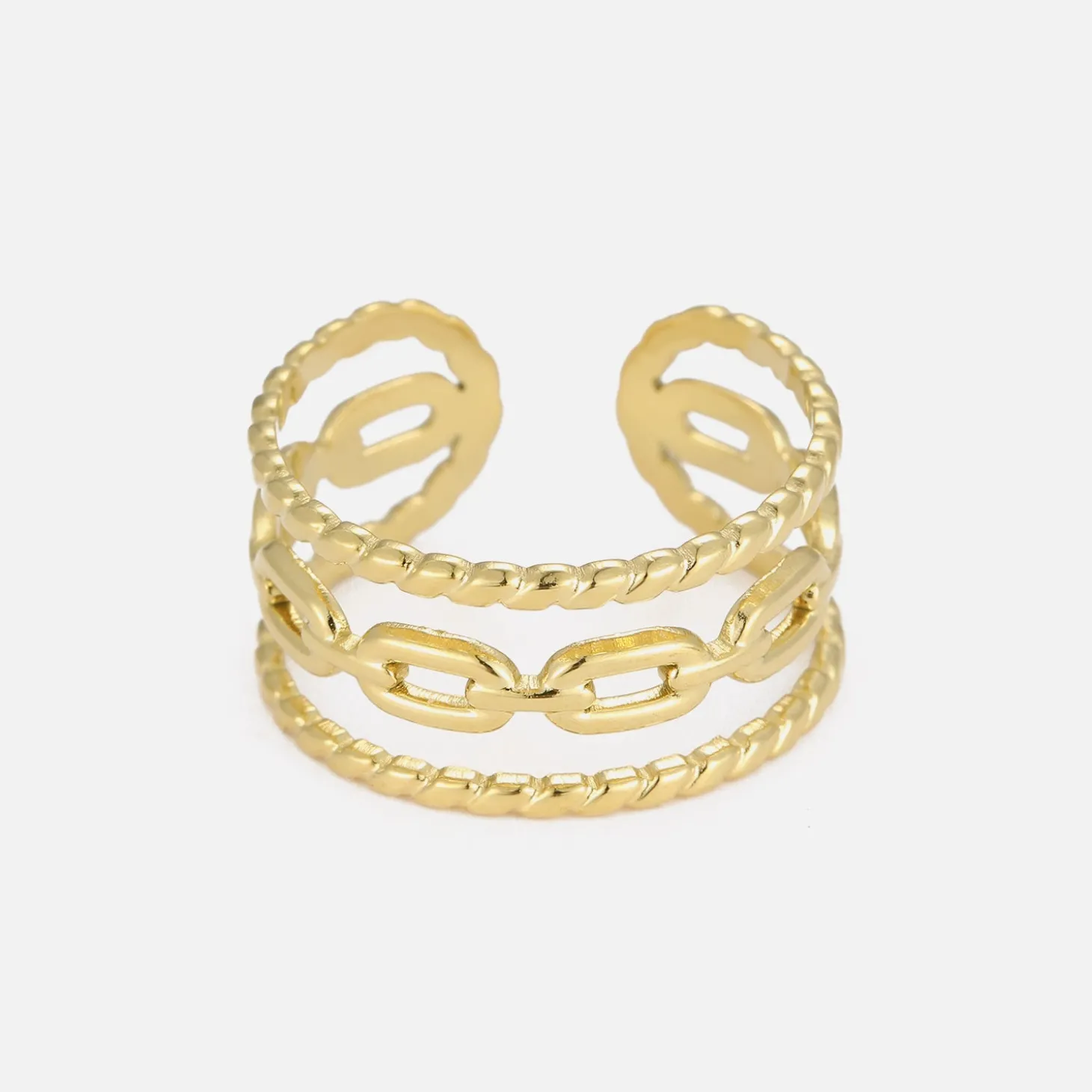 Gouden statement ring drie laags. Ring is verstelbaar naar jouw gewenste maat. Gemaakt van hoogwaardig stainless steel.