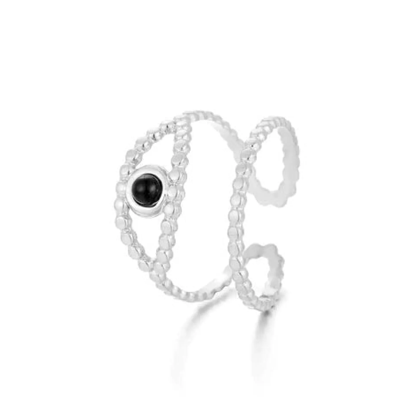 Zilveren twee laags ring met oog. Verstelbaar naar jouw gewenste maat. Gemaakt van hoogwaardig stainless steel. Geluk sieraden.