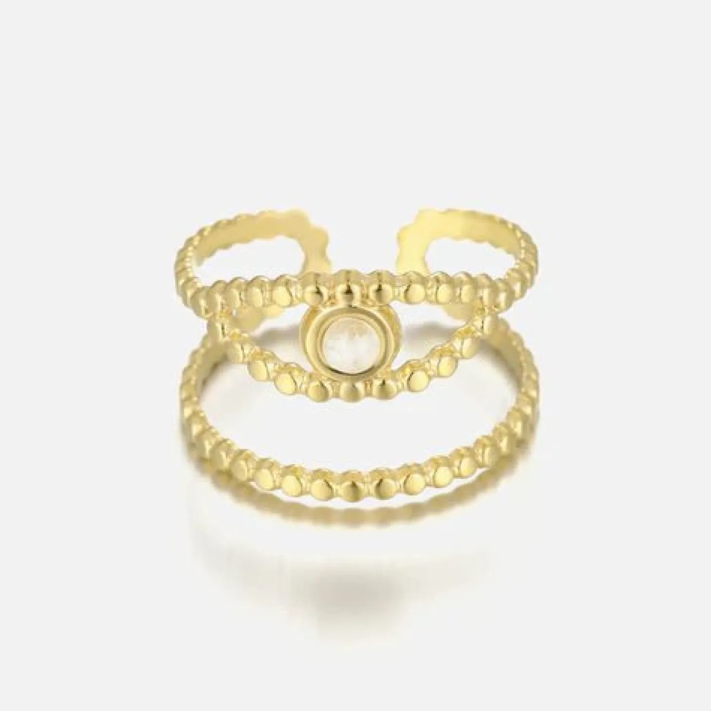 Gouden twee laags ring met oog. Verstelbaar naar jouw gewenste maat. Gemaakt van hoogwaardig stainless steel. Geluk sieraden.