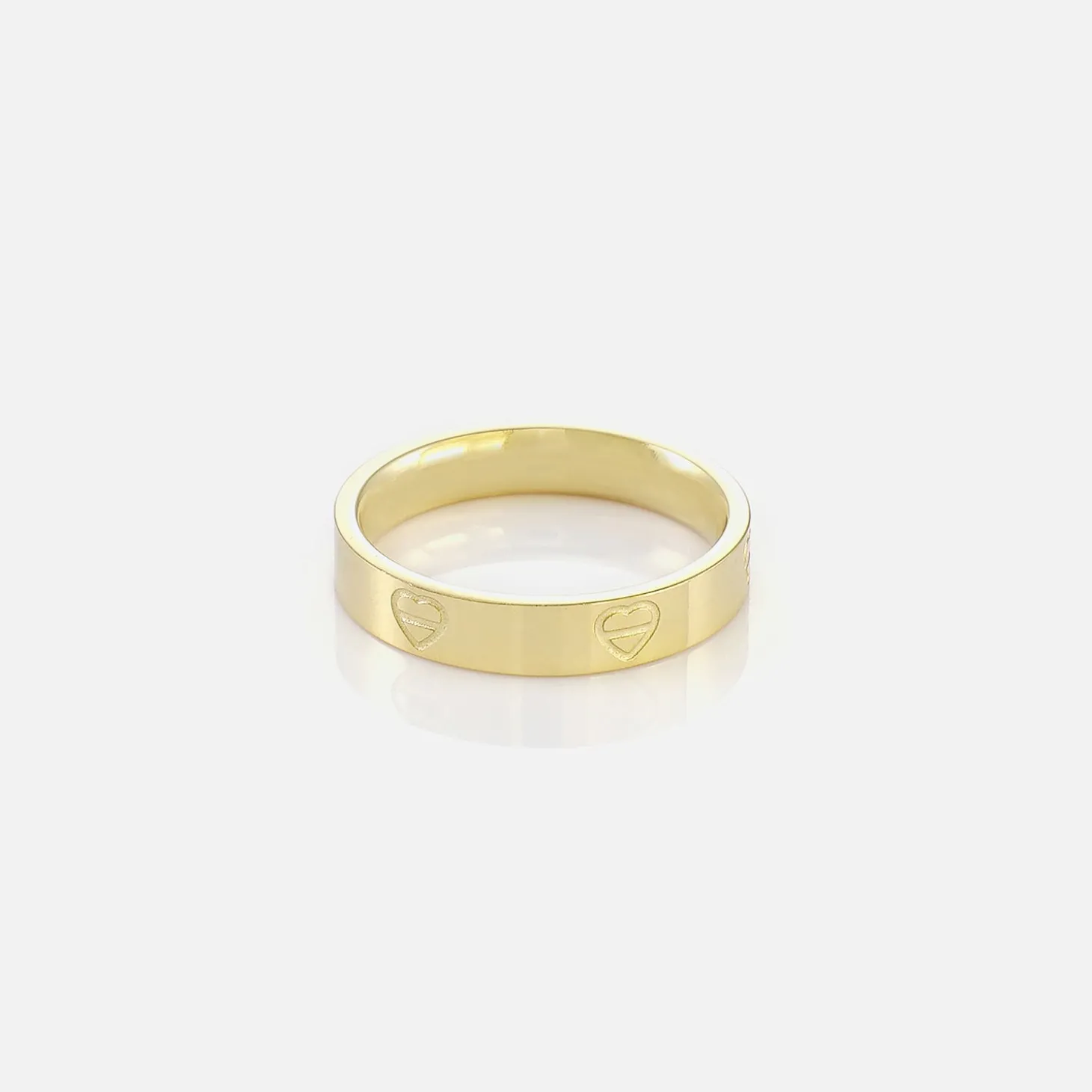 Gouden ring met gegraveerd hartjes. Kies jouw gewenste maat. Gemaakt van hoogwaardig stainless steel. Valentijn sieraden, liefdes sieraden.