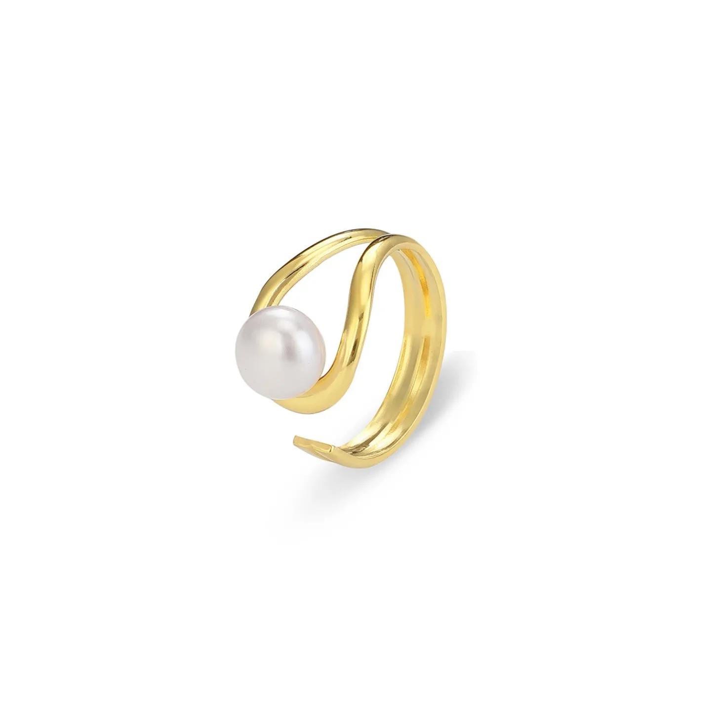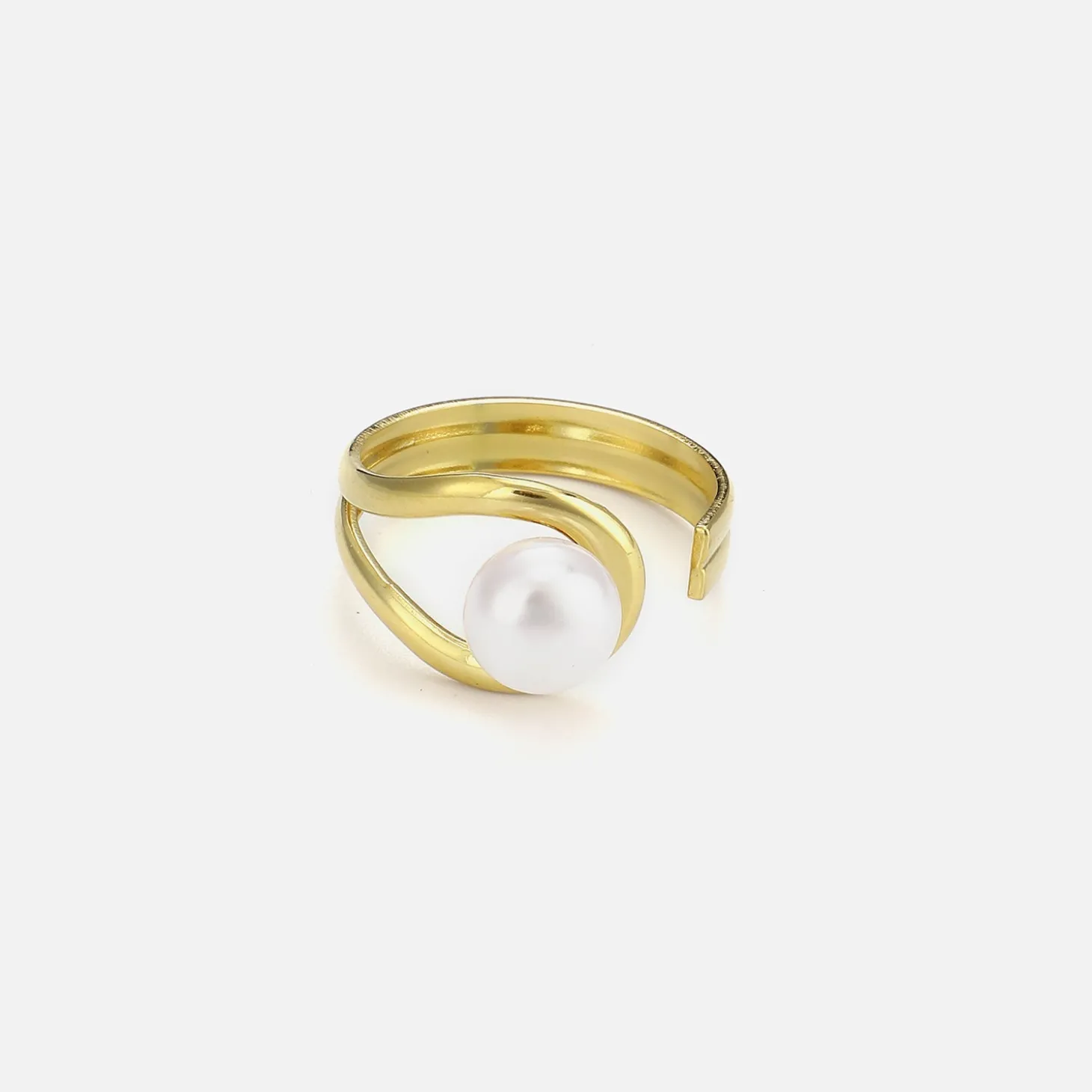 Gouden ring met parel. Verstelbaar naar jouw gewenste maat. Gemaakt van hoogwaardig stainless steel. Parel sieraden. (parel kan verkleuren door contact met water)