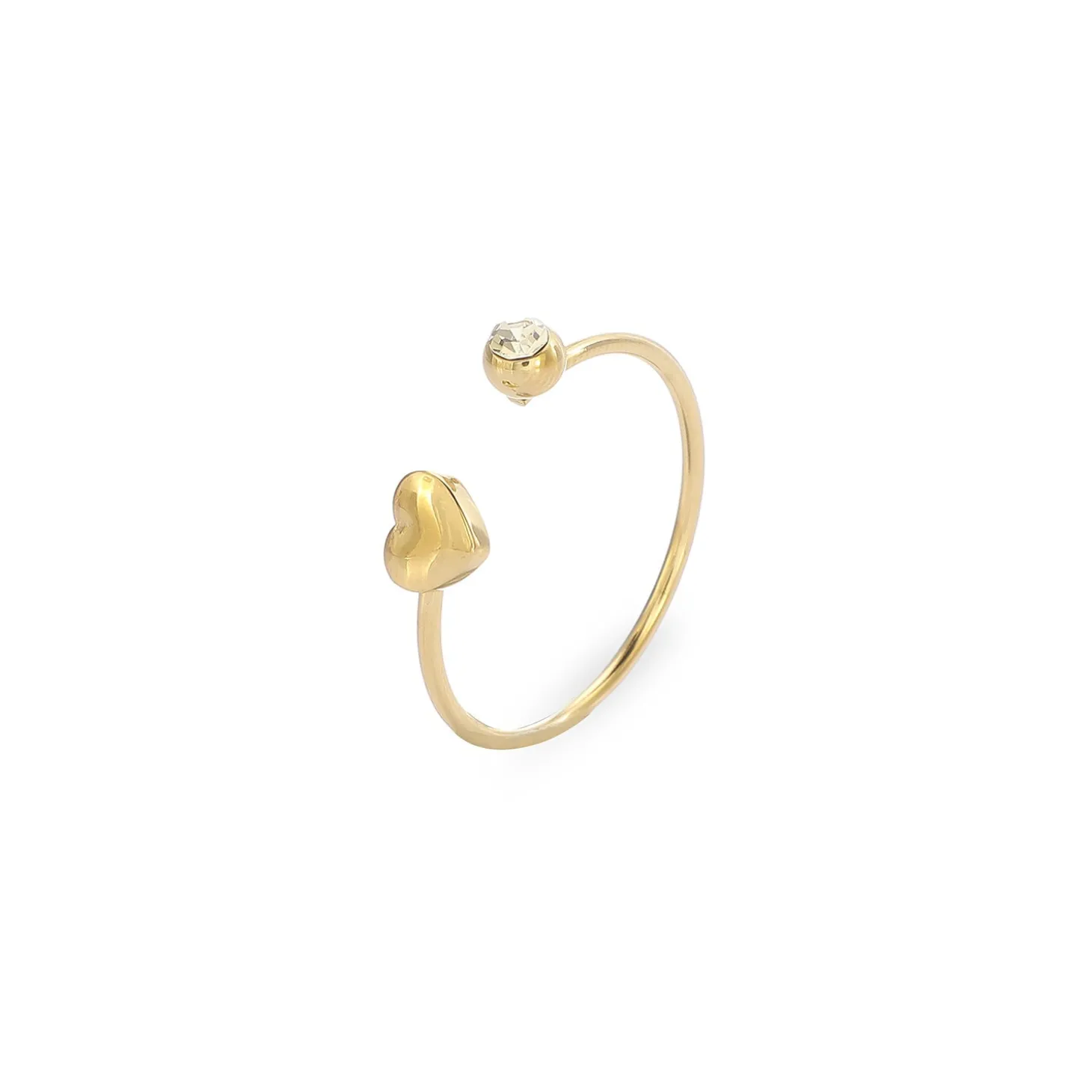 Gouden ring met hartje en steentje. Verstelbaar naar jouw gewenste maat. Gemaakt van hoogwaardig stainless steel.