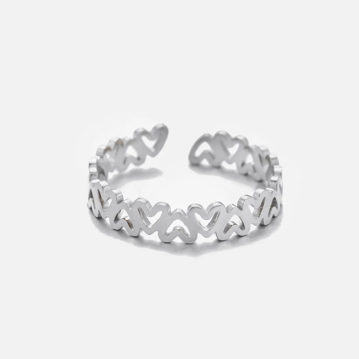 Zilveren ring met hartjes. Verstelbaar naar jouw gewenste maat. Gemaakt van hoogwaardig stainless steel.