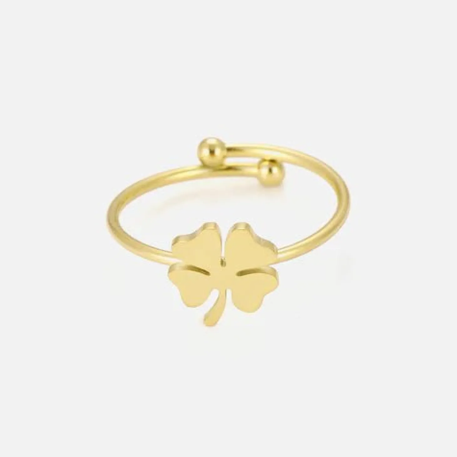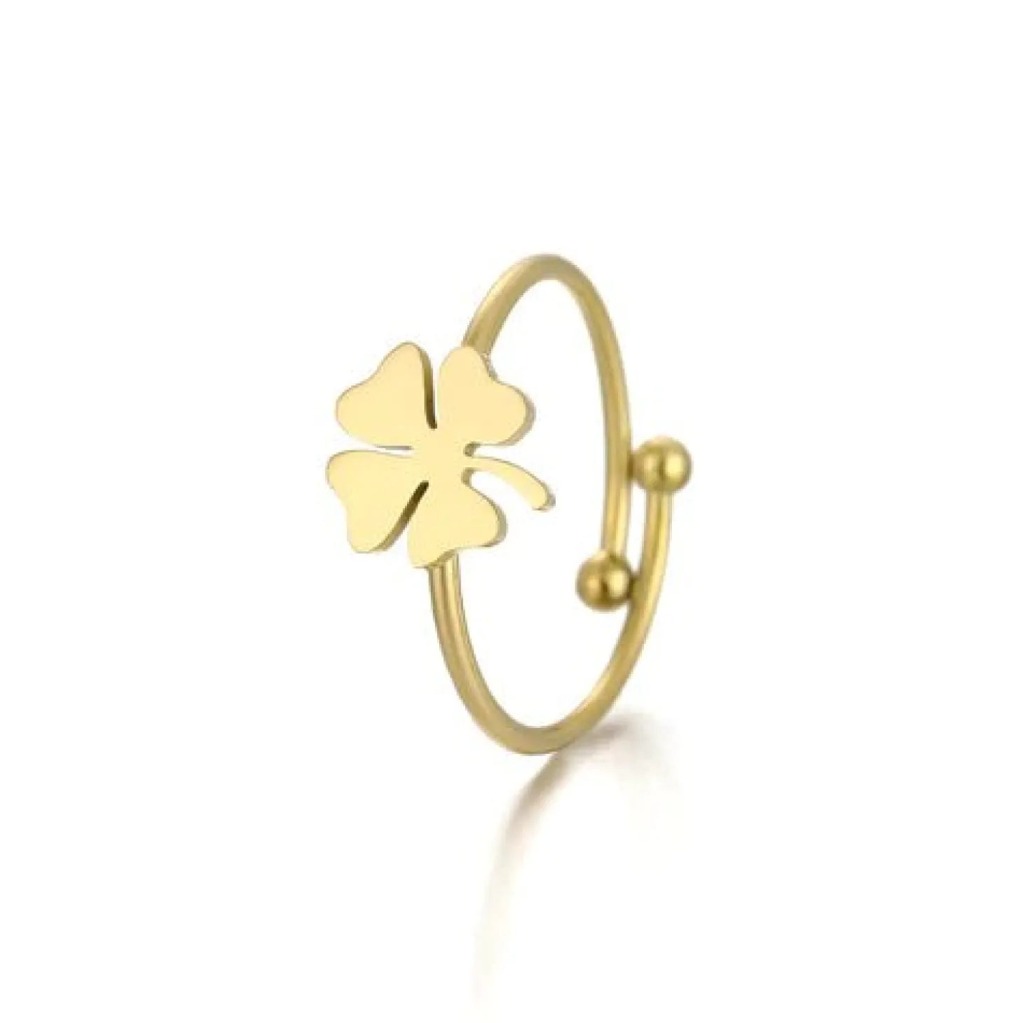 Gouden klavertjevier ring. Verstelbaar naar jouw gewenste maat. Gemaakt van hoogwaardig stainless steel. Geluk sieraden, klaver sieraden.