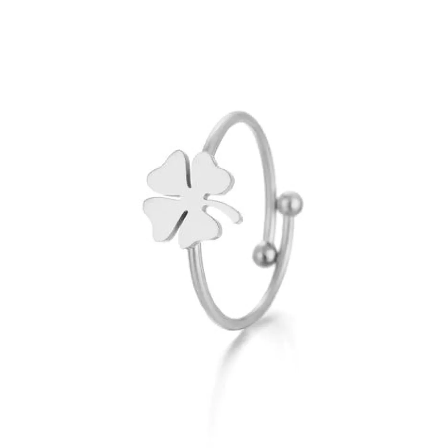 Zilveren ring met klavertjevier. Verstelbaar naar jouw gewenste maat. Gemaakt van hoogwaardig stainless steel.