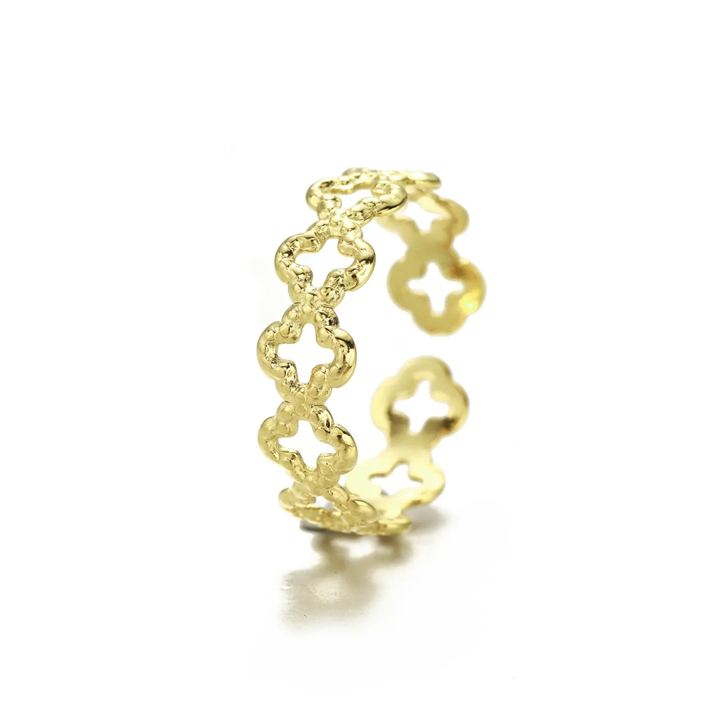 Gouden ring met open kruisjes. Verstelbaar naar jouw gewenste maat. Gemaakt van hoogwaardig stainless steel.