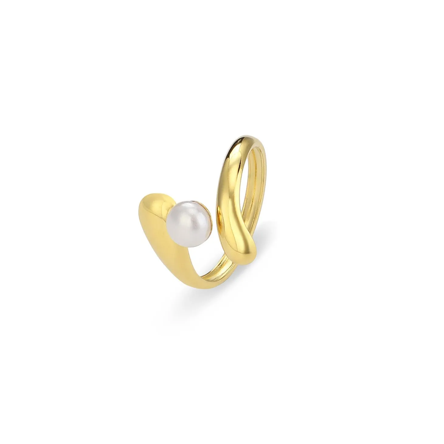 Gouden ring met parel. Verstelbaar naar jouw gewenste maat. Gemaakt van hoogwaardig stainless steel. Parel sieraden. (parel kan verkleuren door contact met water)