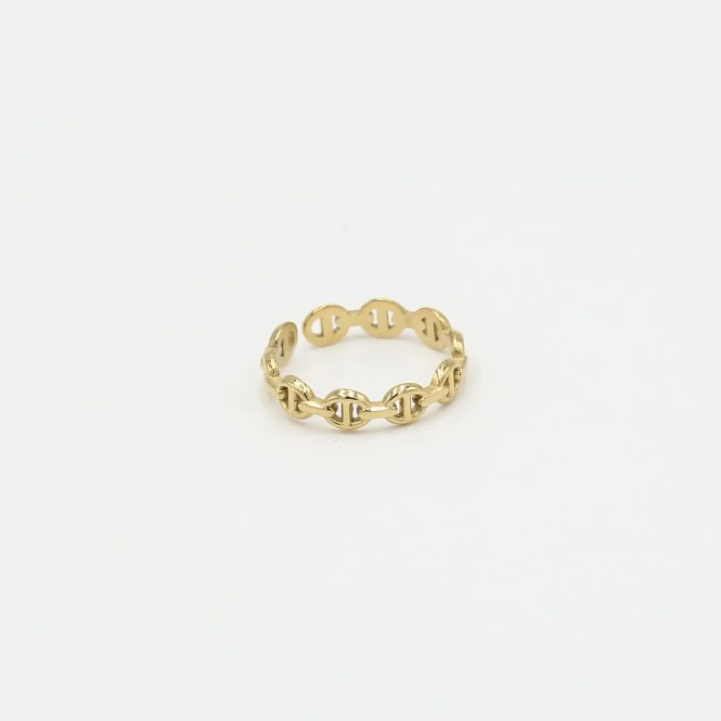 Gouden ring met schakel design. Verstelbaar naar jouw gewenste maat. Gemaakt van hoogwaardig stainless steel.