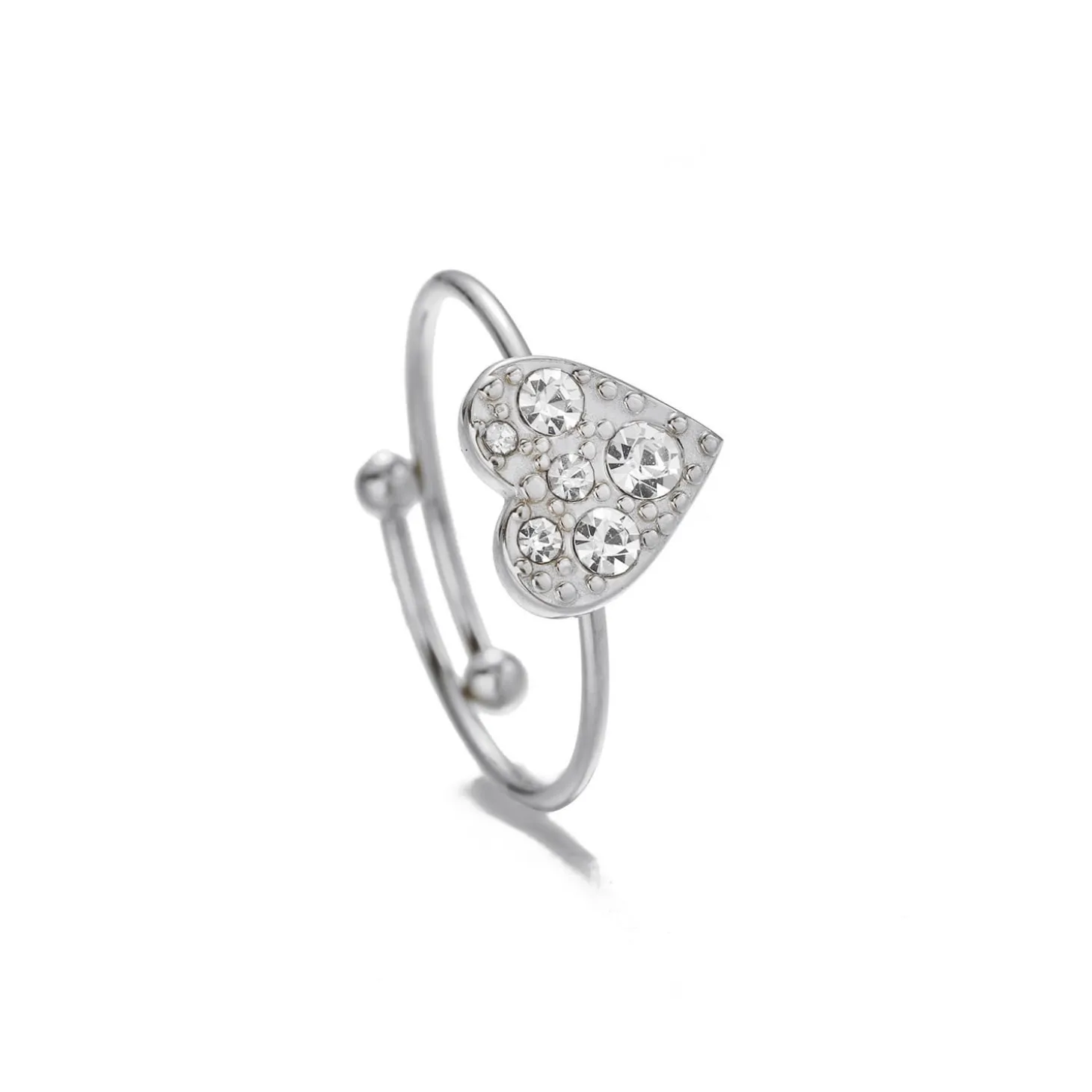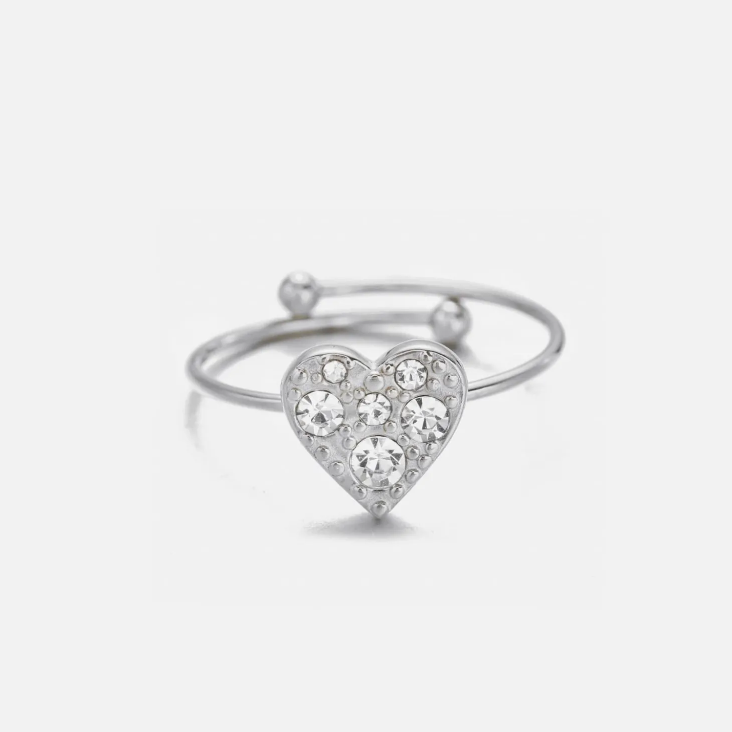 Zilveren hart ring met steentjes. Ring is verstelbaar naar jouw gewenste maat. Gemaakt van hoogwaardig stainless steel. Liefdes sieraden, Valentijn sieraden.