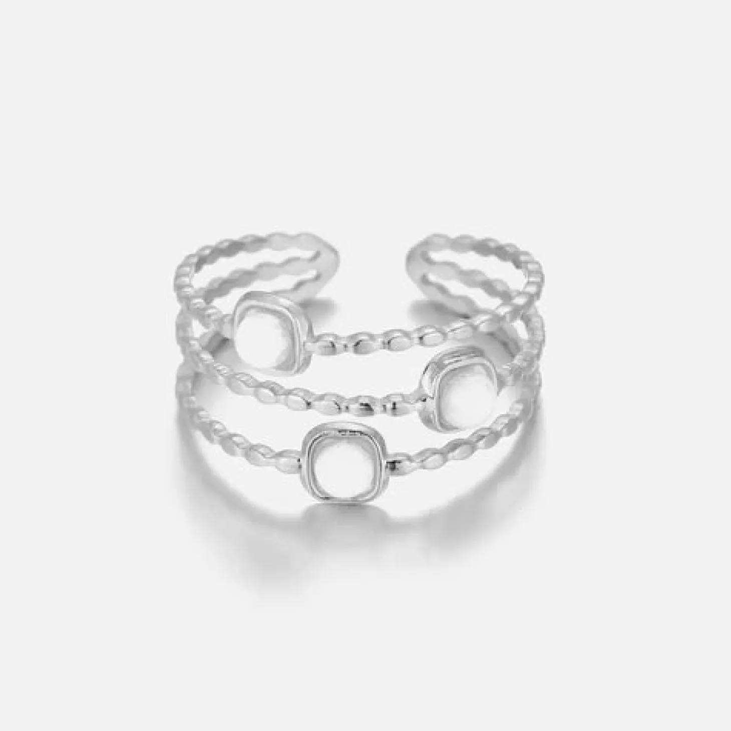 Zilveren ring met witte stenen. Verstelbaar naar jouw gewenste maat. Gemaakt van hoogwaardig stainless steel.