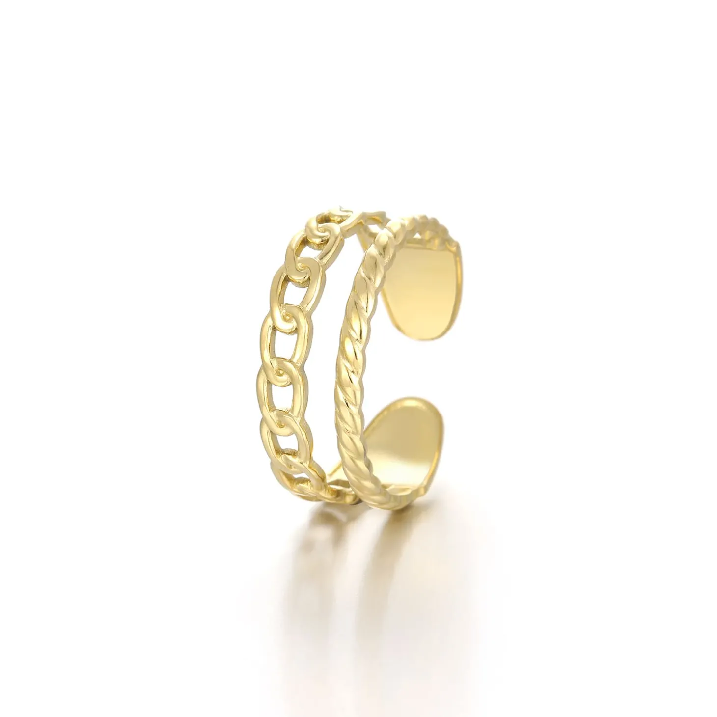 Gouden schakel ring twee lagen. Verstelbaar naar jouw gewenste maat. Gemaakt van hoogwaardig stainless steel.