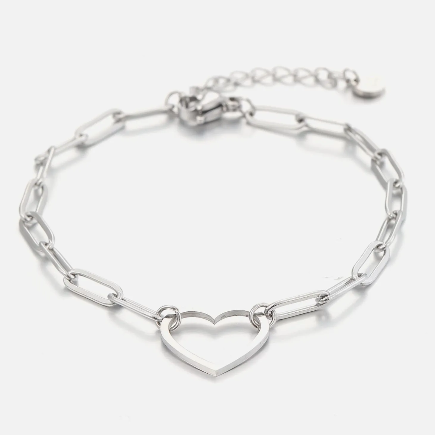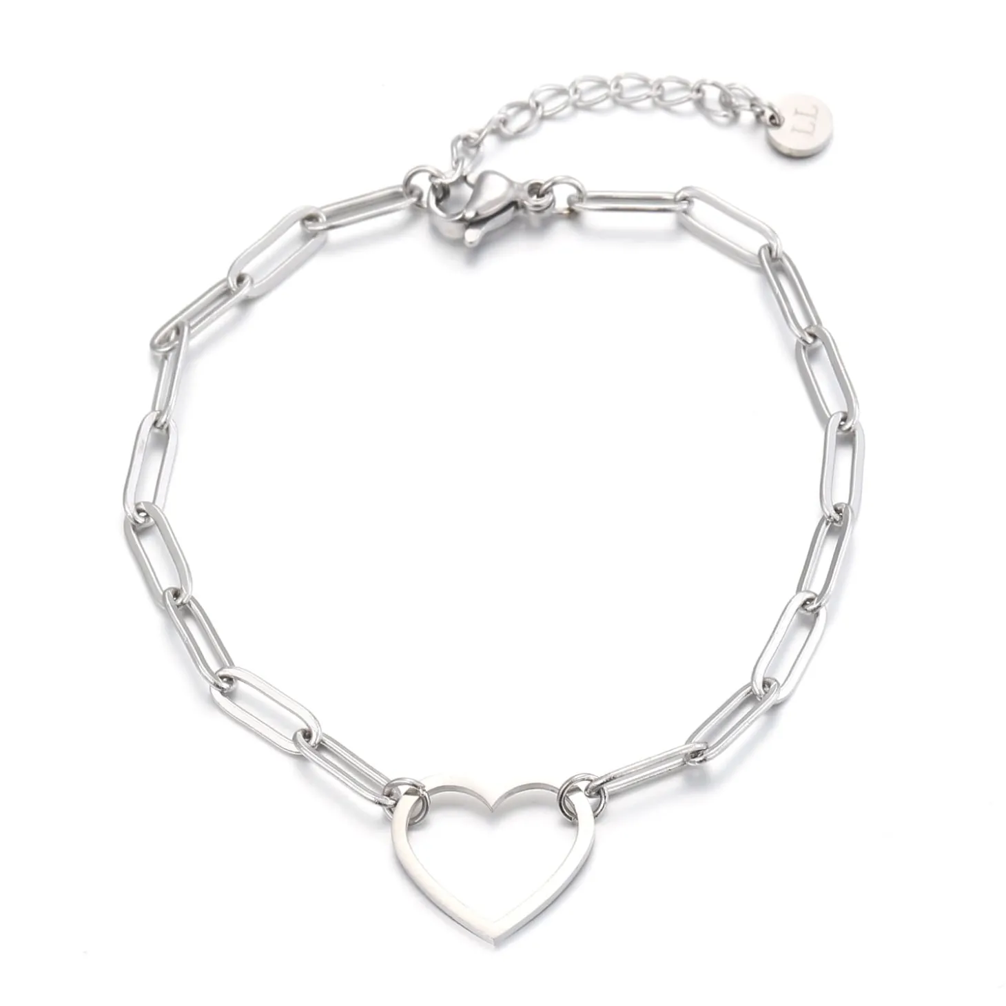 Gouden schakel armband met groot hart. 16 cm lang en kan nog eens met 4 cm verlengd worden. Gemaakt van hoogwaardig stainless steel. Dankzij het verlengstukje is de armband verstelbaar en geschikt voor verschillende polsmaten.
