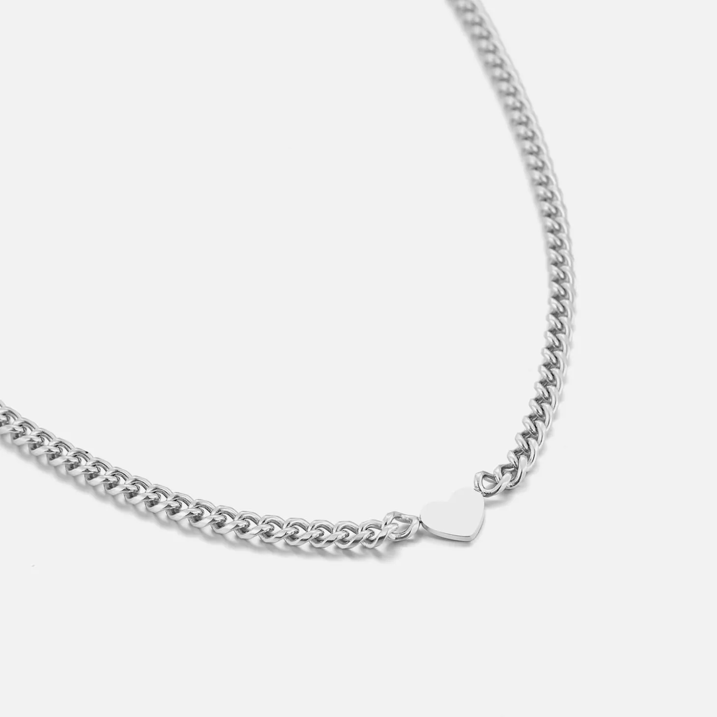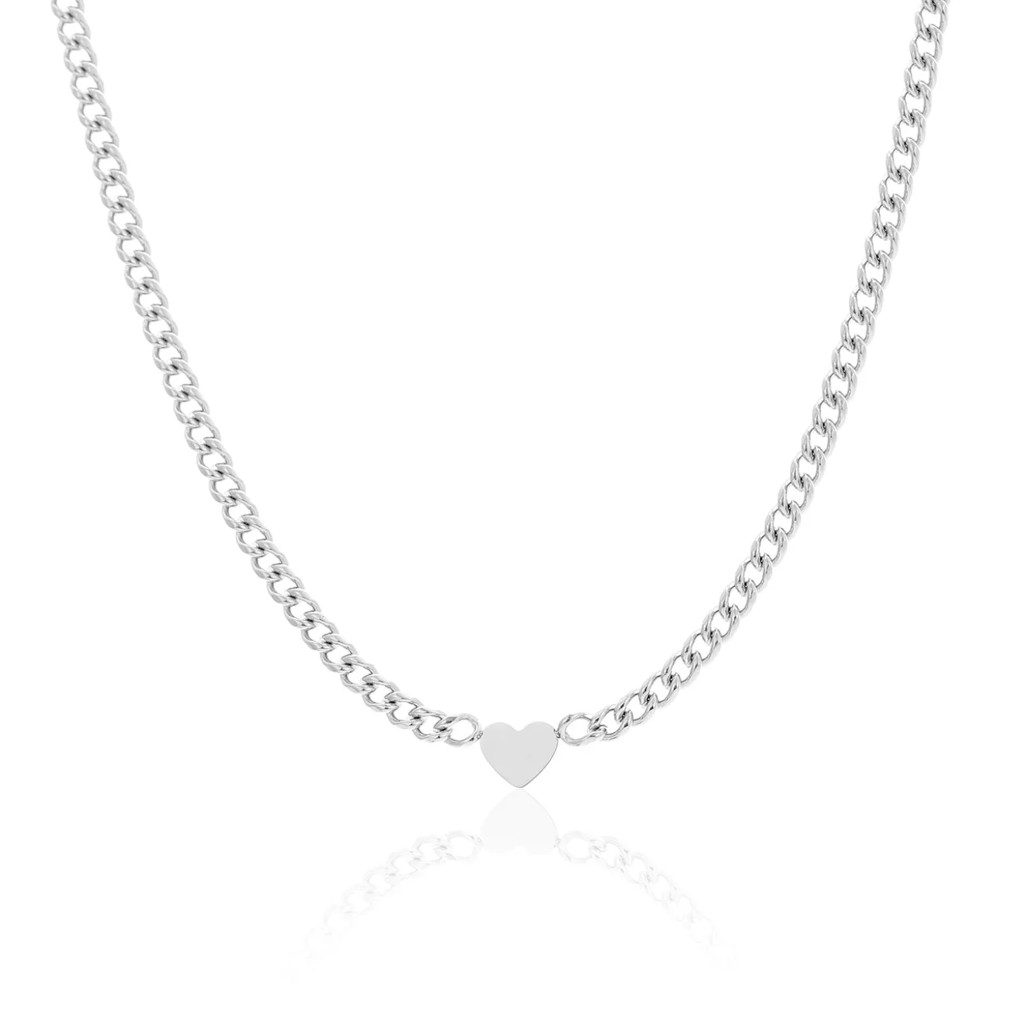 Zilveren ketting met hartje. Lengte 40cm en nog eens te verlengen met 5cm. Gemaakt van hoogwaardig stainless steel.