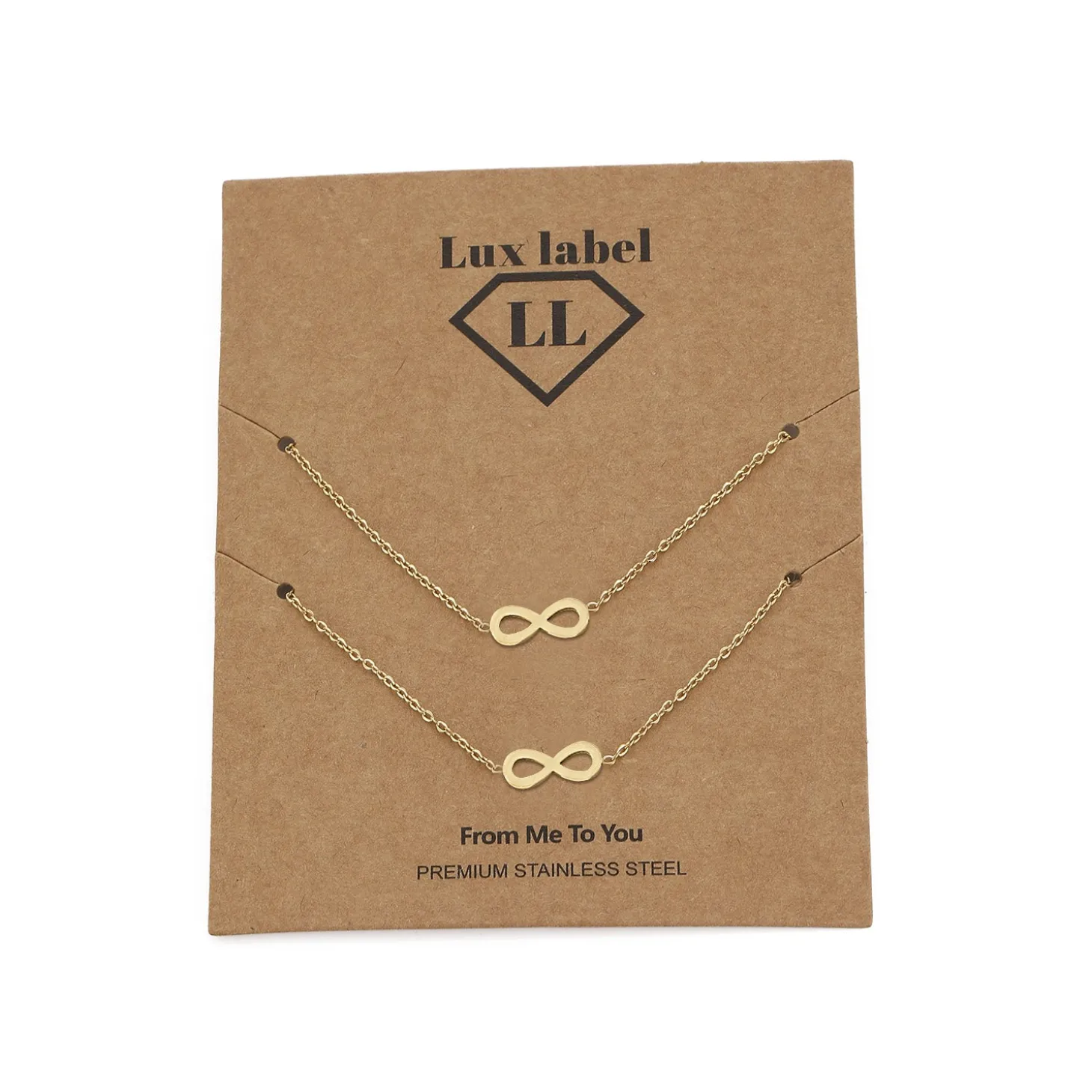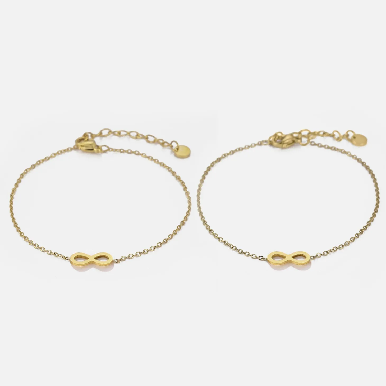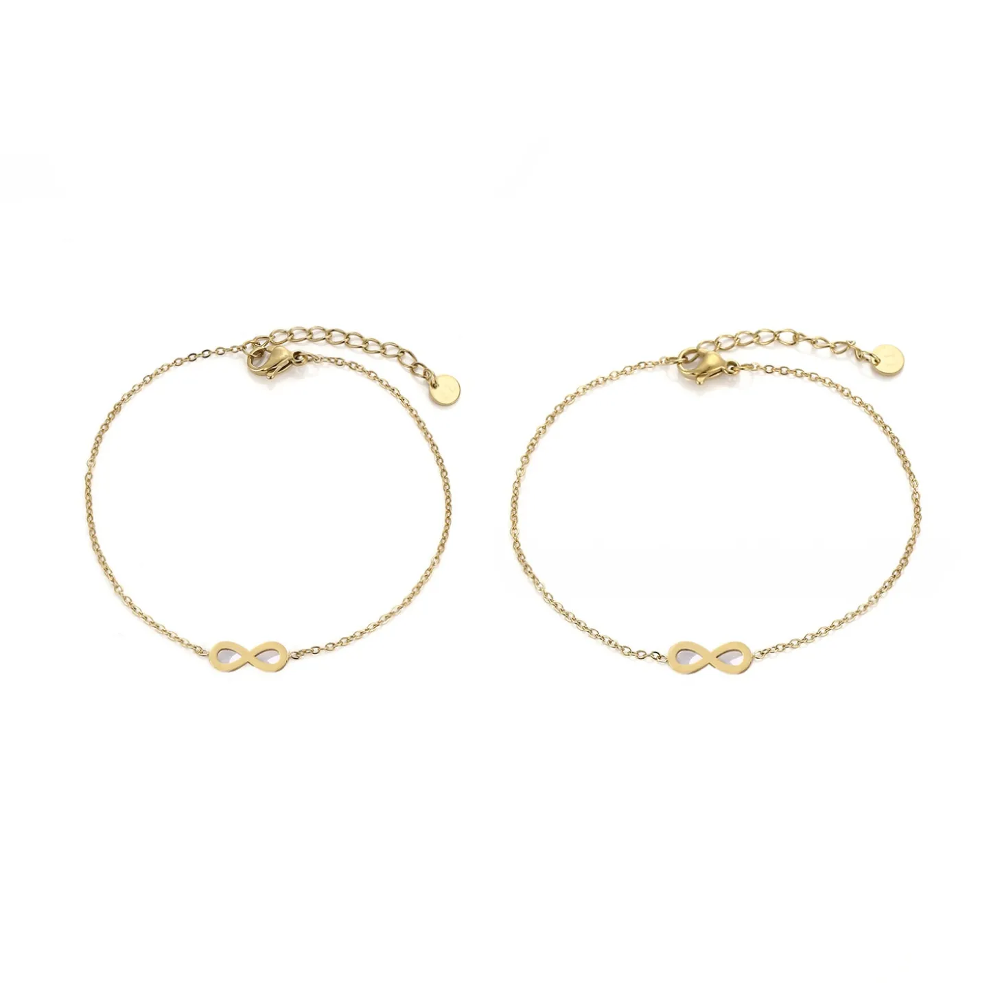 Set infinitief armbanden. 16 cm te verstellen tot 20 cm. Gemaakt van hoogwaardig stainless steel. Het infinity bedeltje is 5mm. De armband geschikt voor verschillende polsmaten. Deze set bevat 2 armbandjes om met elkaar verbonden te zijn.