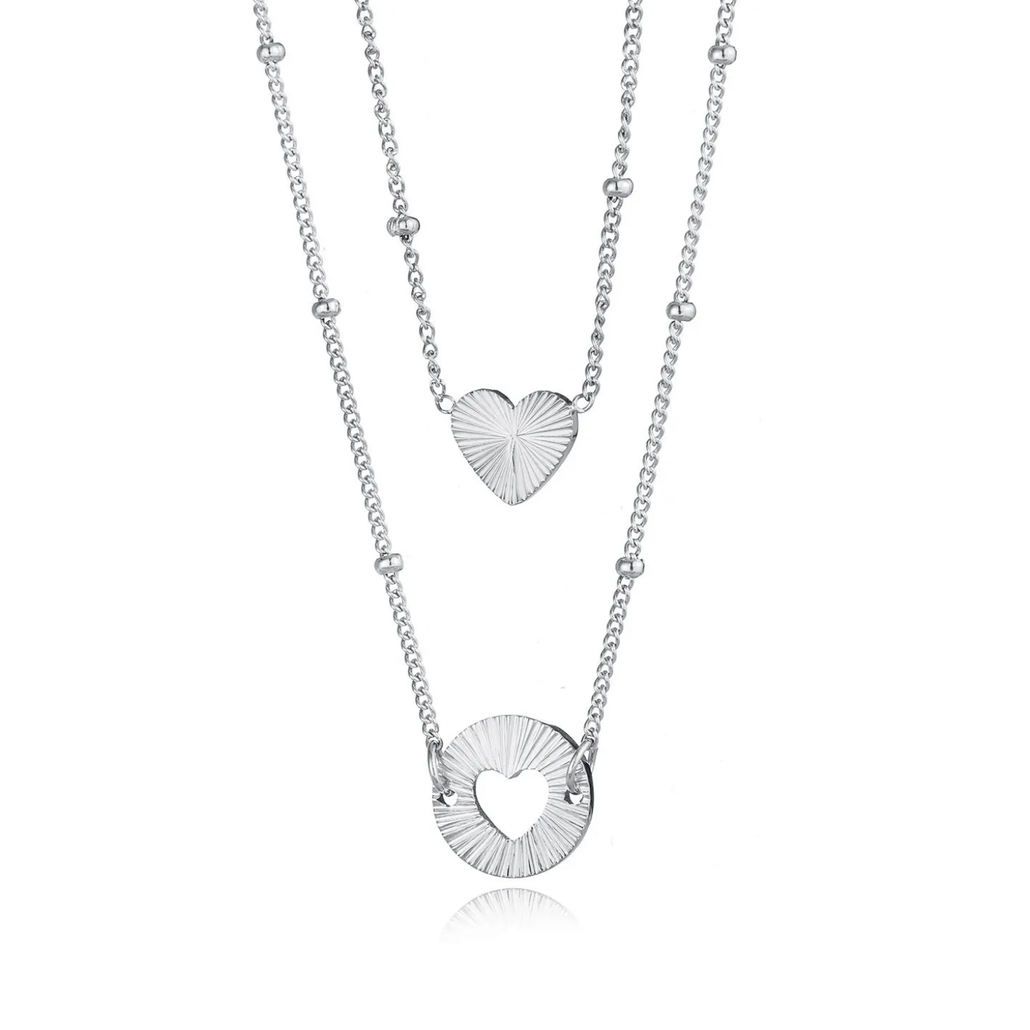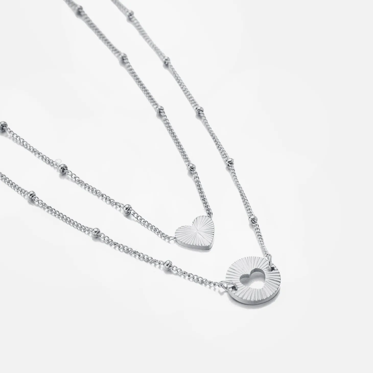 Zilveren ketting set . Lengte 40cm en nog eens te verlengen met 5cm. Gemaakt van hoogwaardig stainless steel. Deze set bestaat uit twee kettingen, ideaal als Moederdag cadeau of om te delen met een vriendin. Moederdag sieraden, vriendschap sieraden.