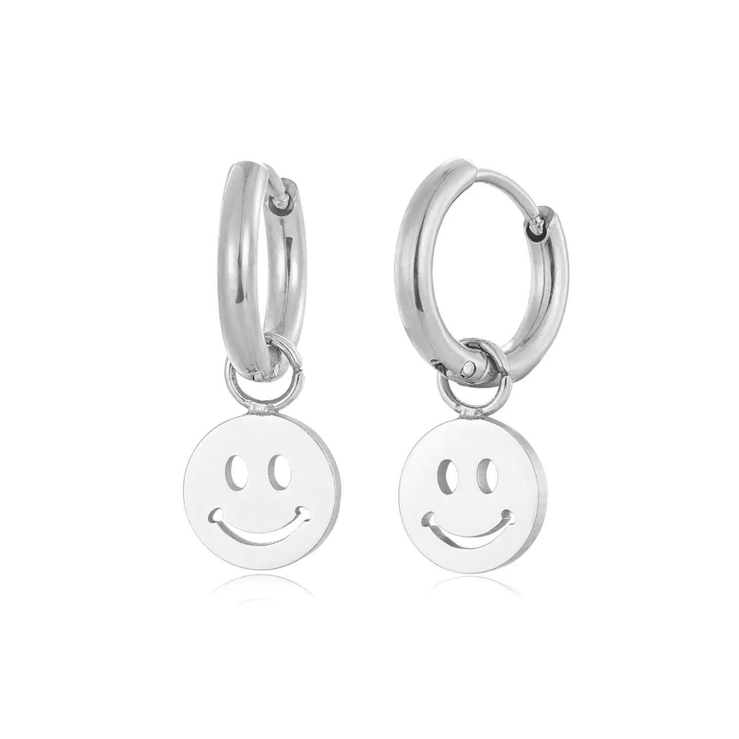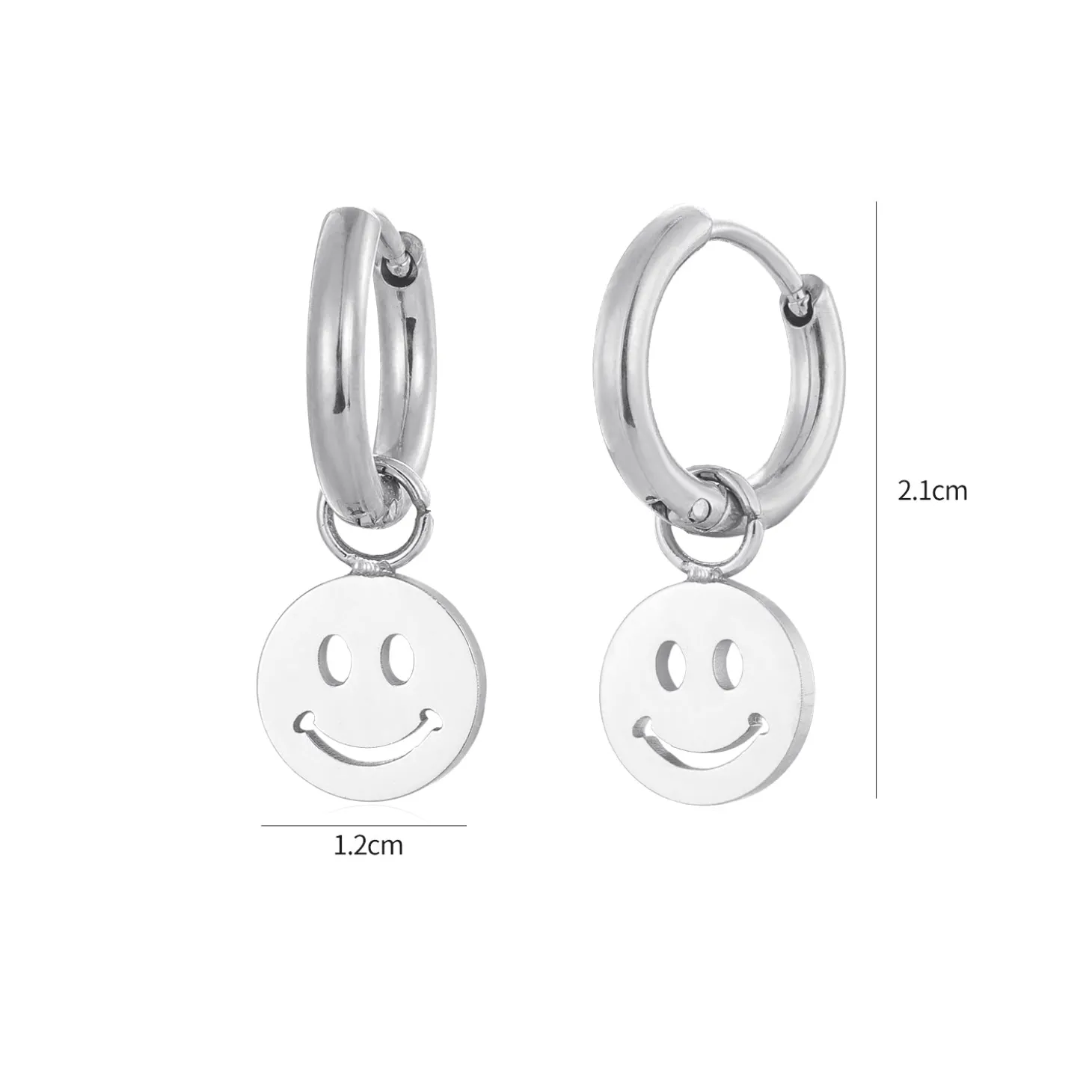 Zilveren smiley oorbellen. Deze oorbellen zijn 2.1cm lang. Gemaakt van Hoogwaardig Stainless Steel.