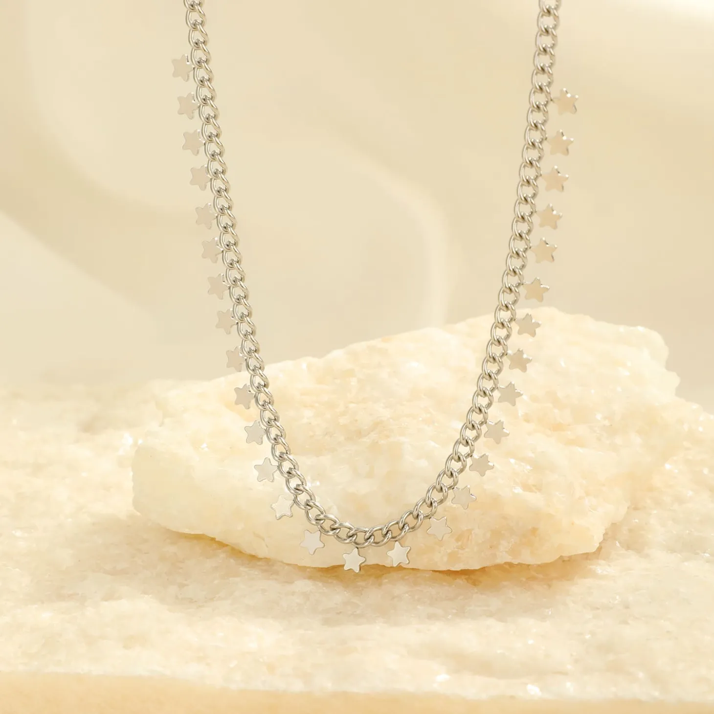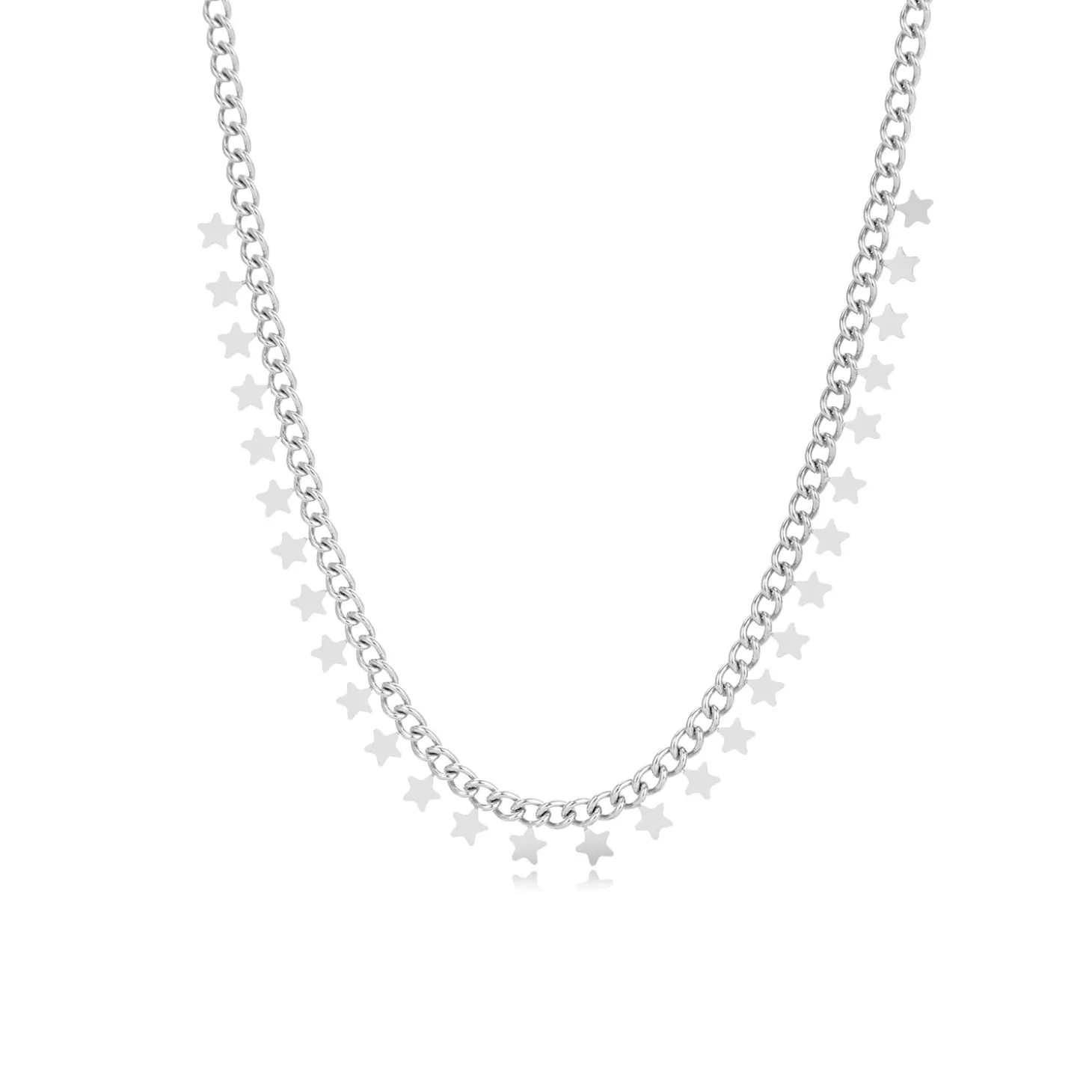 Zilveren ketting met sterretjes. Lengte 40cm en nog eens te verlengen met 5cm. Gemaakt van hoogwaardig stainless steel.