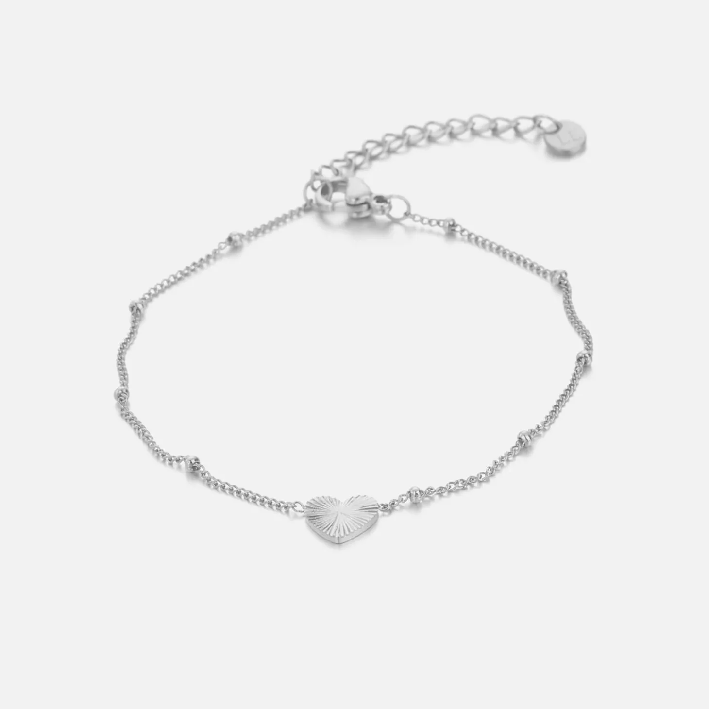 Zilveren armband met dicht hartje. 16 cm lang en kan nog eens met 4 cm verlengd worden. Gemaakt van hoogwaardig stainless steel. Armband is verstelbaar en geschikt voor verschillende polsmaten.